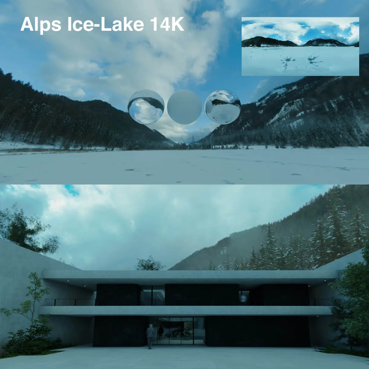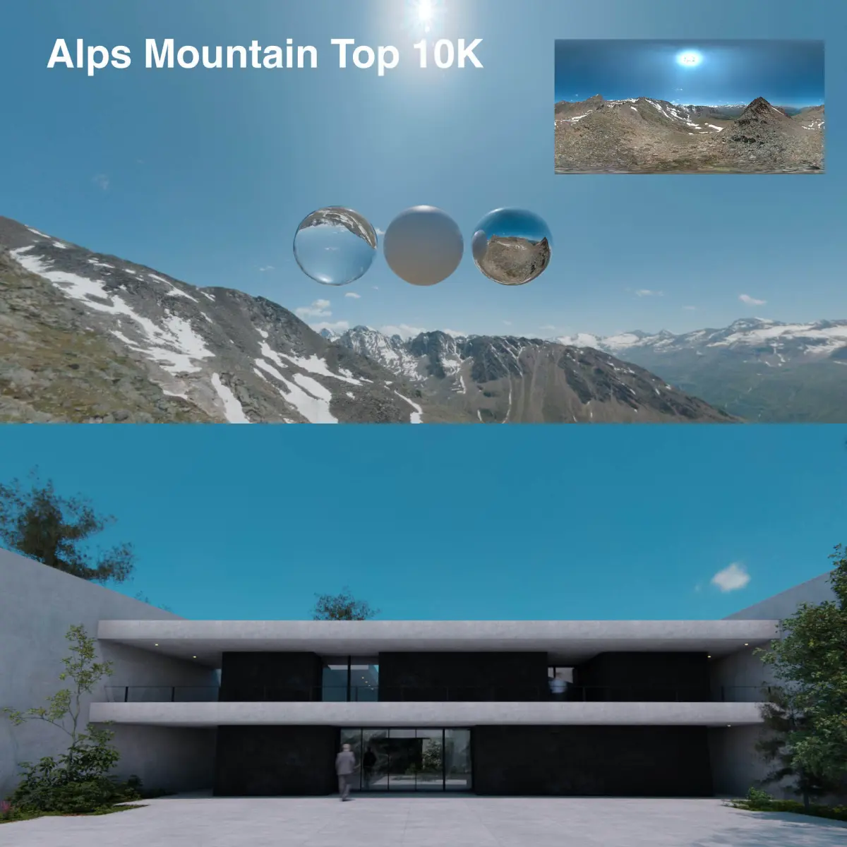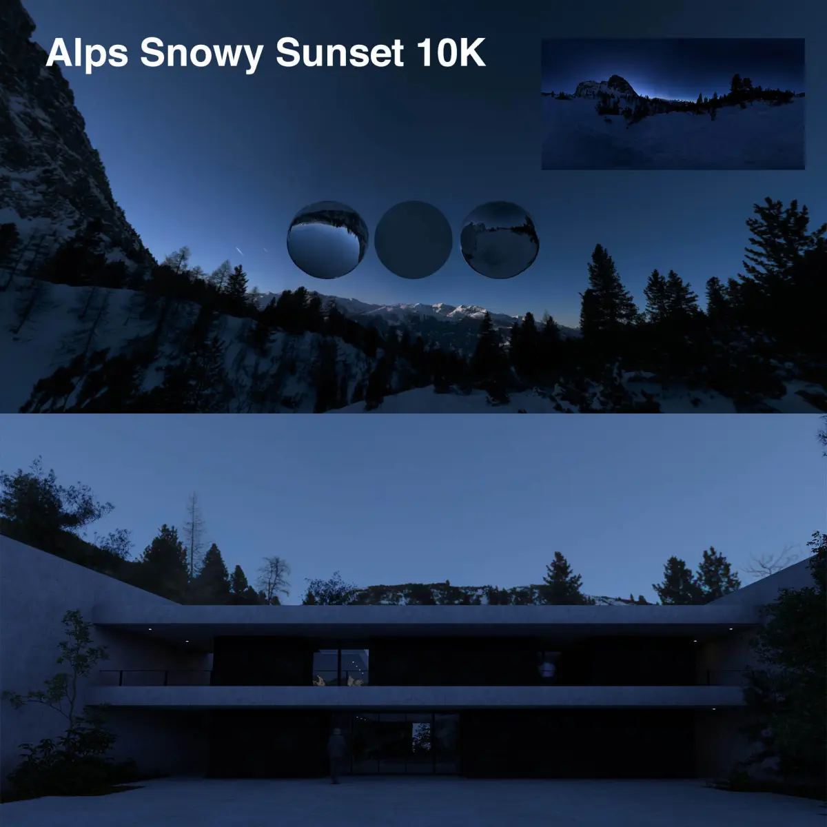 All of the HDRIs are at least 10K in resolution. Some are even in 12K or 14K. I also included downsampled versions in 8K, 4K and 2K, for easier rendering, when needed.