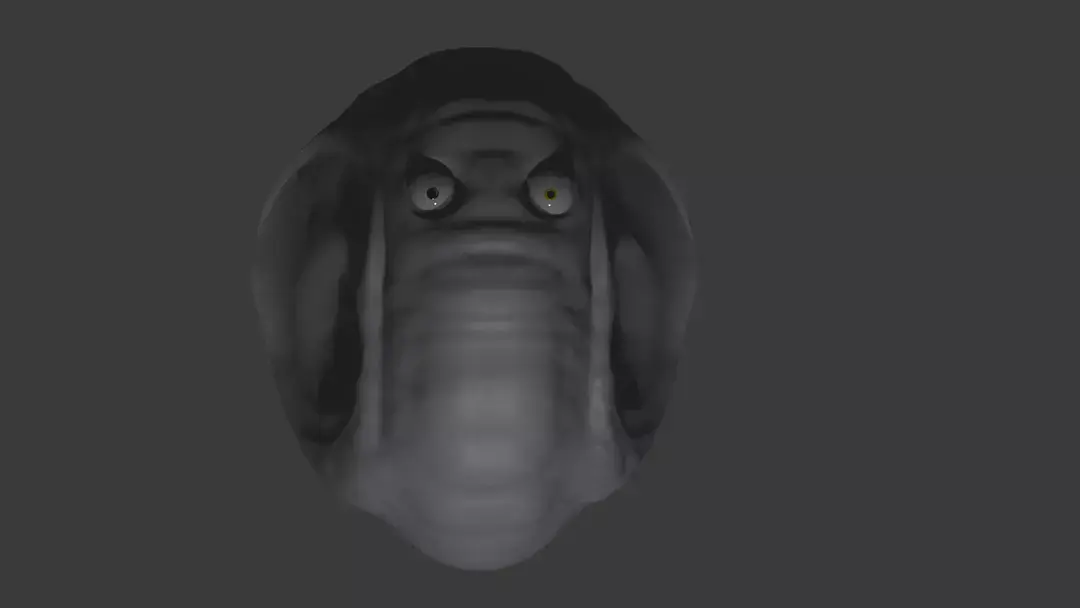 Here is an original 3D model representing an alien head inspired by an elephant, combining extraterrestrial features and animal characteristics.