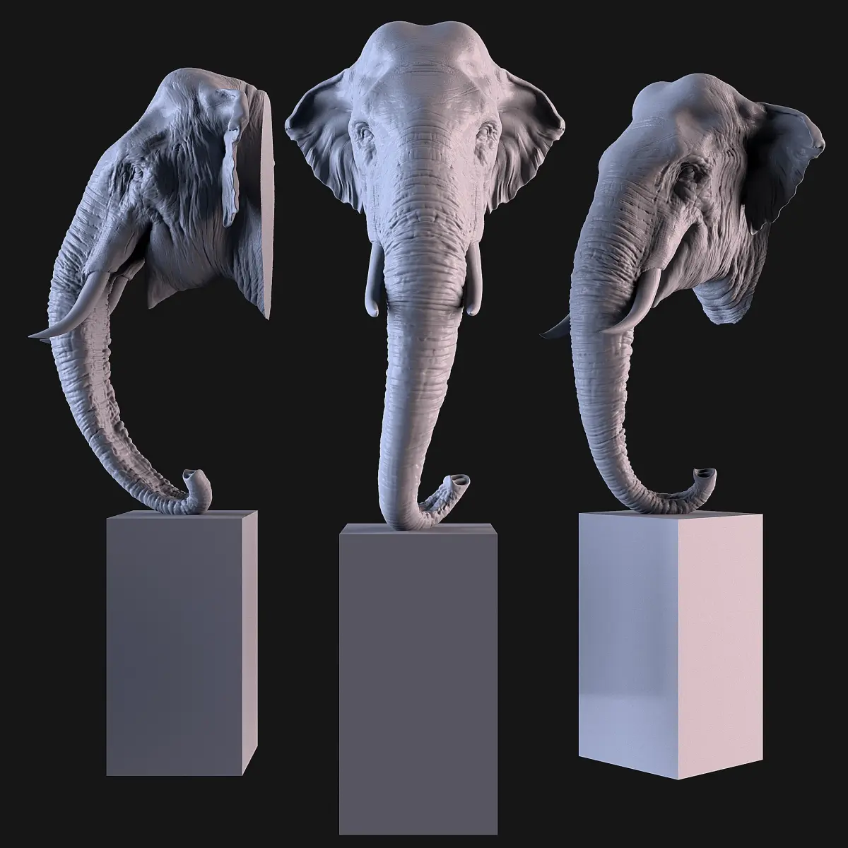 Head Elephant Asian, High Poly, sculpted in ZBrush 2024.
