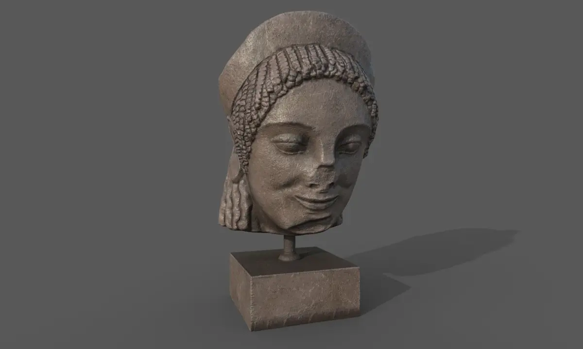 low poly model of a head of a Greek Kore for use in Architectural visualization, AR, and game engines