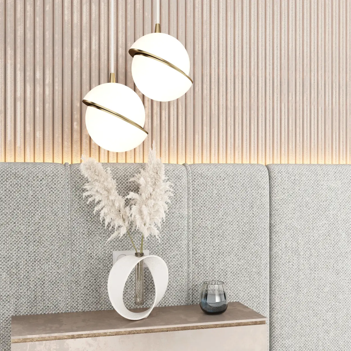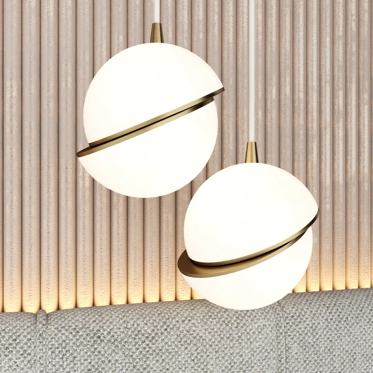 - headboard-decorative wall with slats-pendant lamps suspension SEMICIRCLE WHITE/GOLD D25*H25-decor