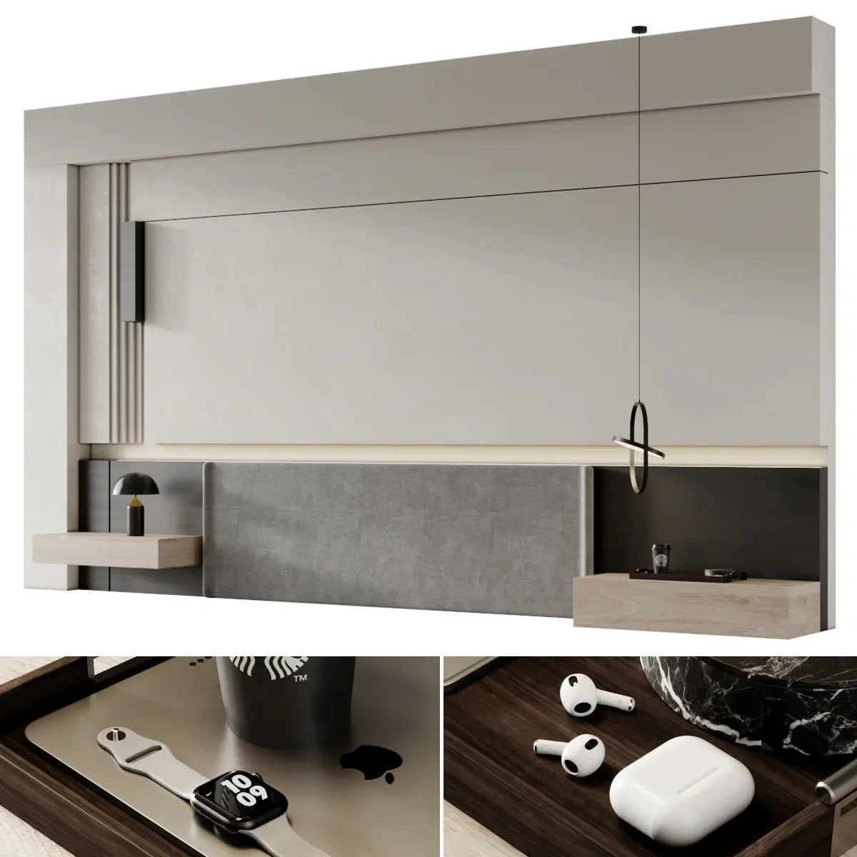 HomeCatalogHeadboard 3 living room with fireplace 3D model