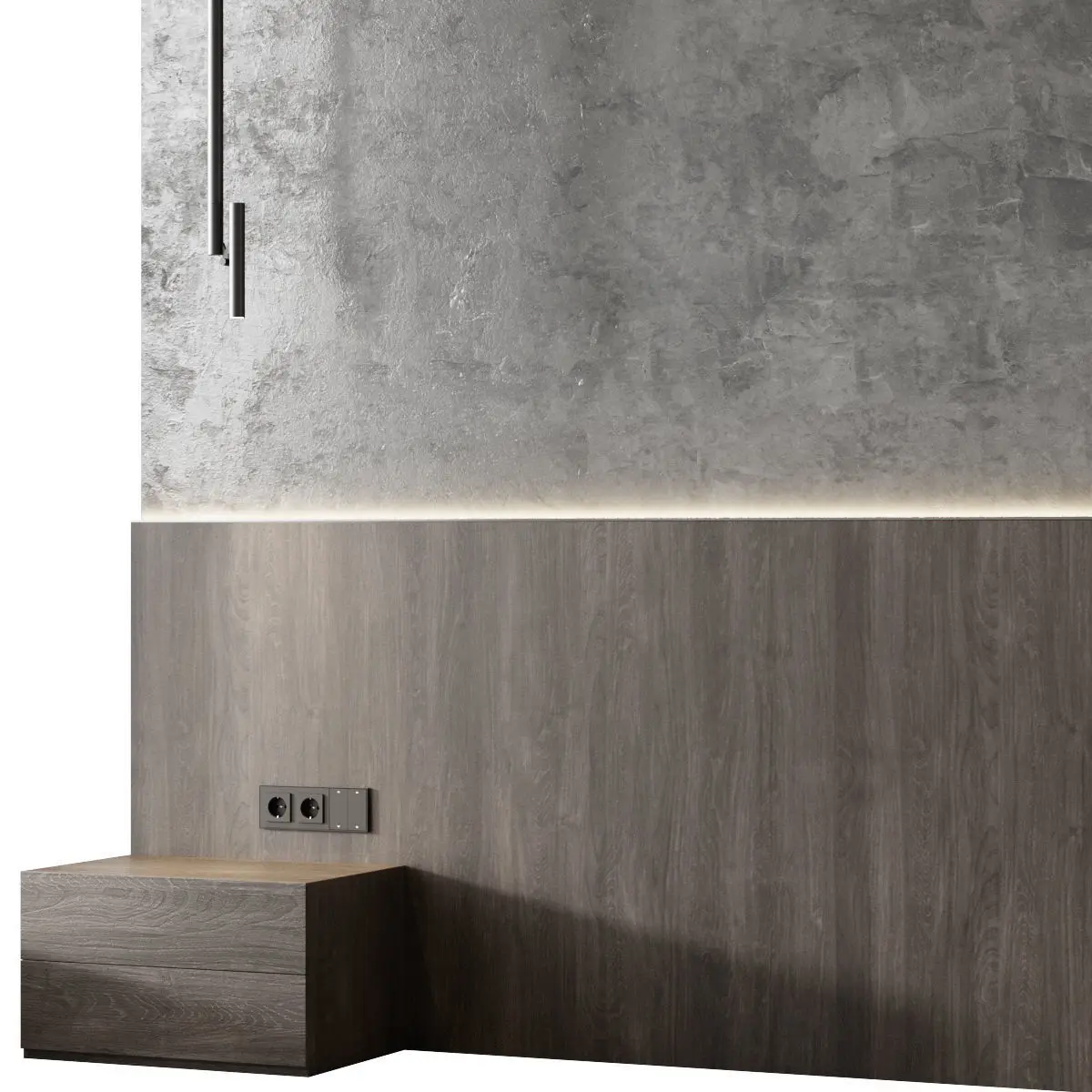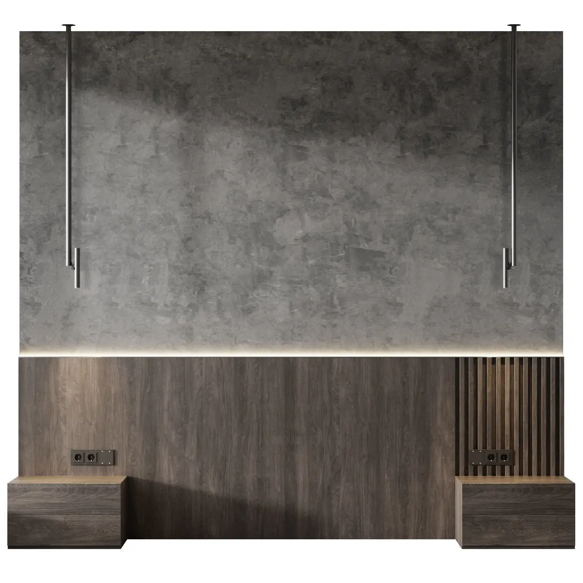 HomeCatalogHeadboard bed with wooden and two drawers 3D model