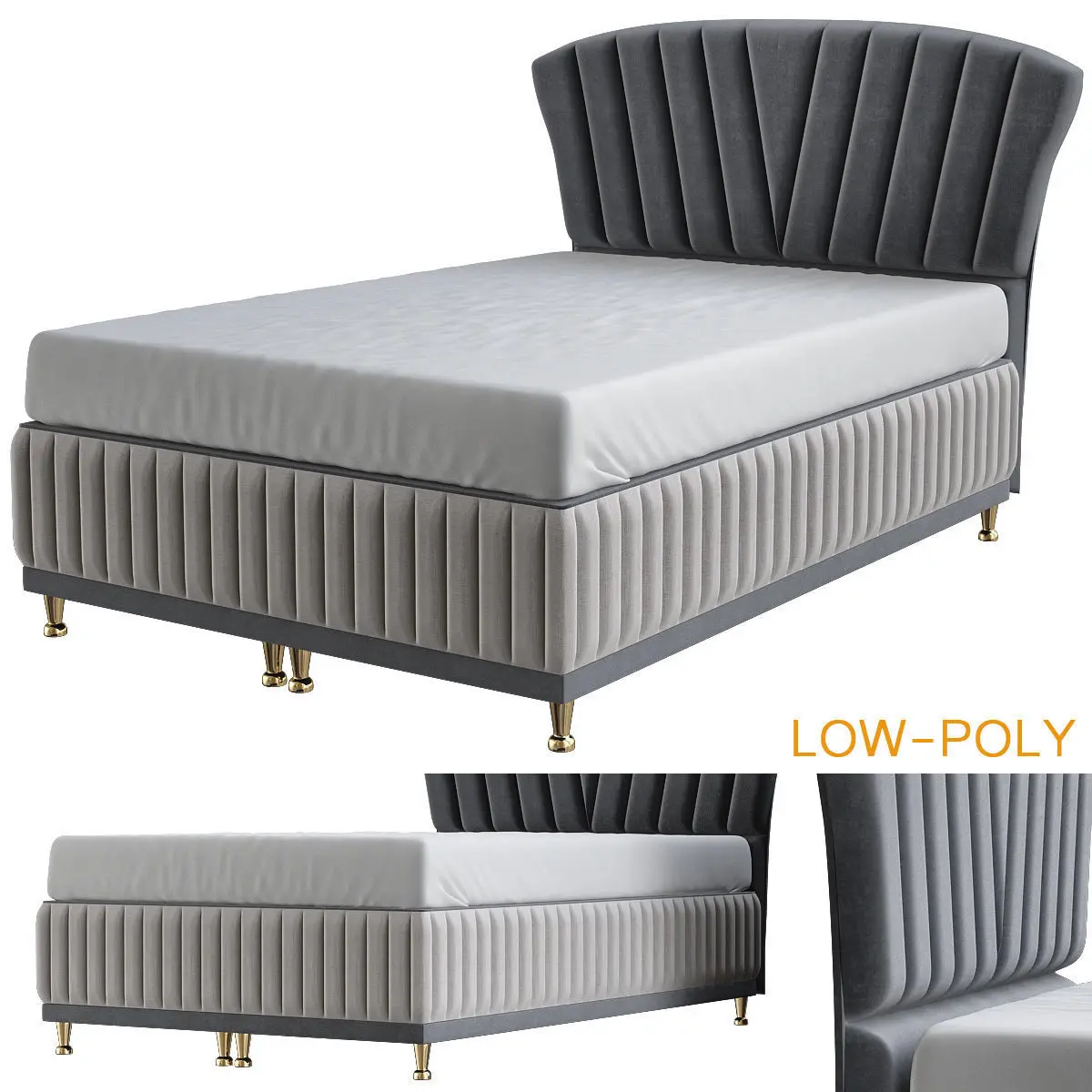Headboard collection low poly 3d model bed frame with tufted ... Low-poly 3D model