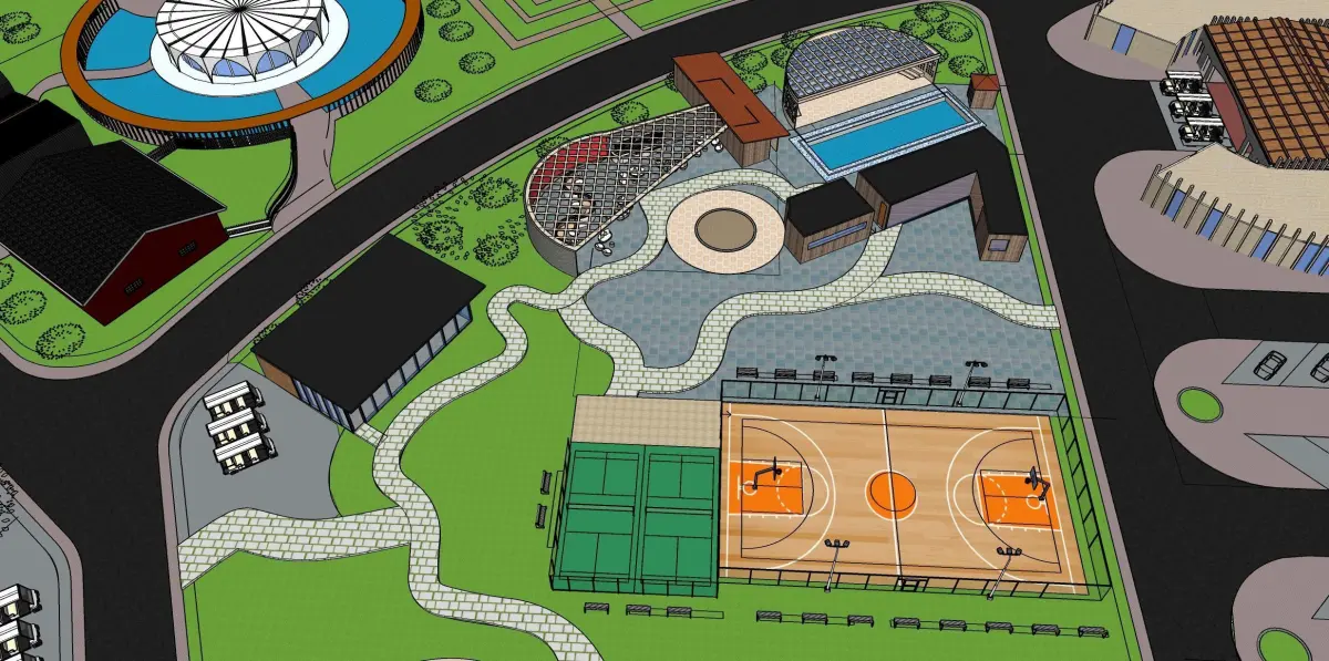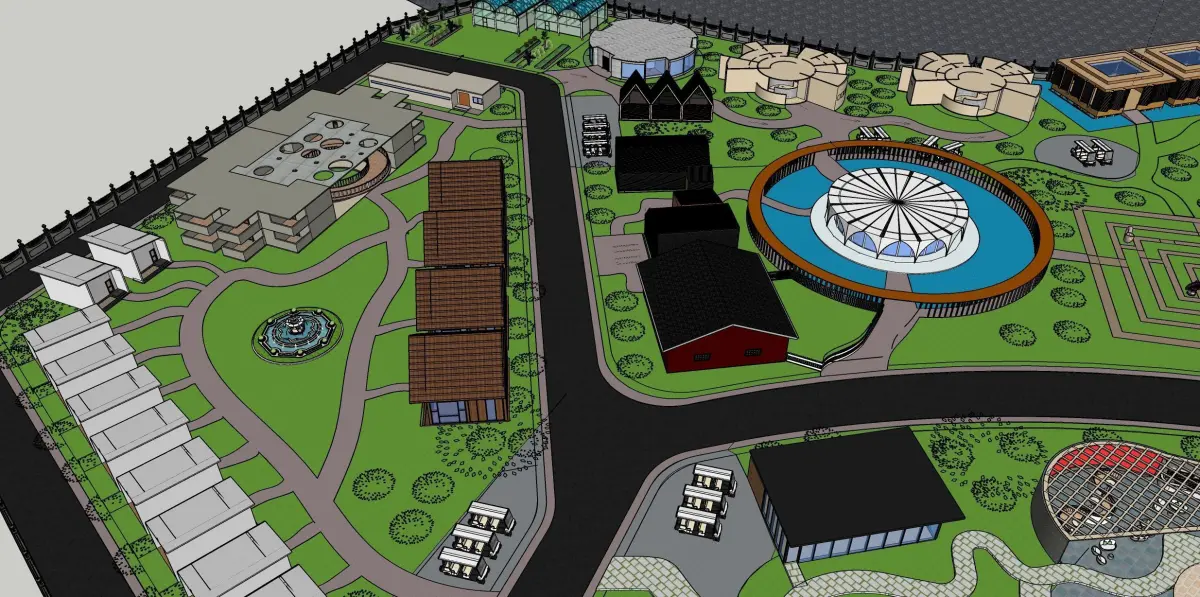 a specially designed healing center focusing on biophilia and spread over a large area, it has amphitheatre, therapy center, sports and gym, library, food court, dining hall, residences etc....