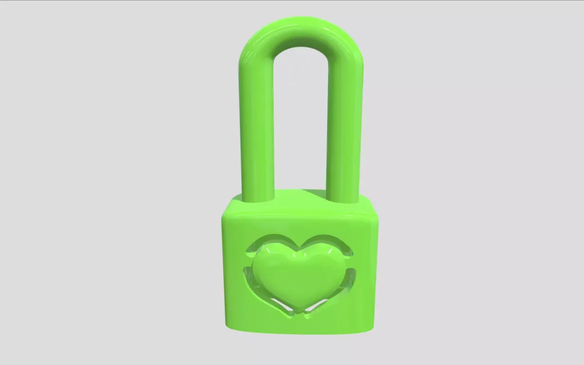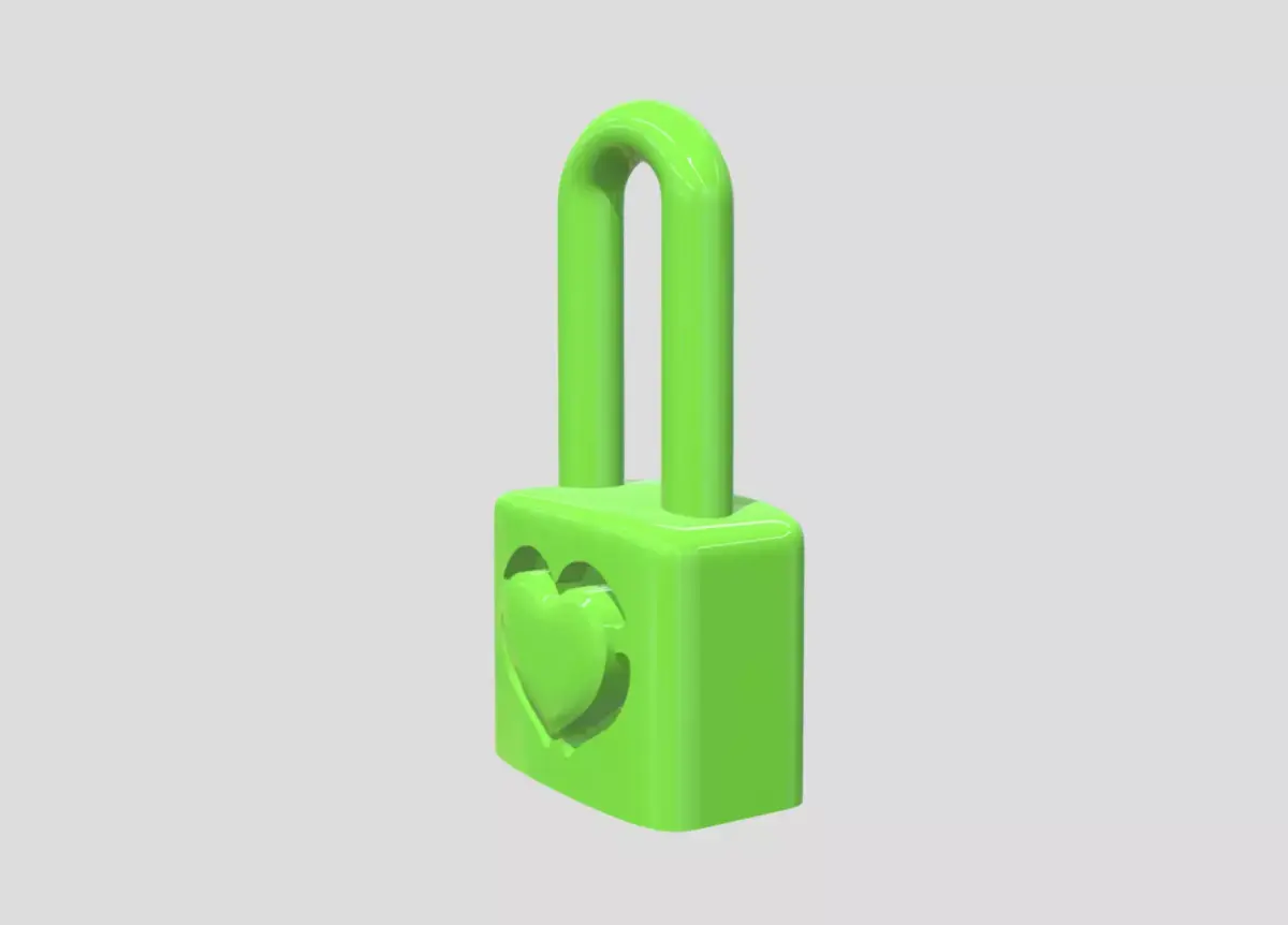 A simple yet powerful 3D model of a Padlock charm featuring a classic heart cutout. This model symbolizes eternal commitment, love, or the idea of a heart being 'locked away' or protected. It works perfectly as a stand-alone charm or as a matching piece with a 'key' pendant.