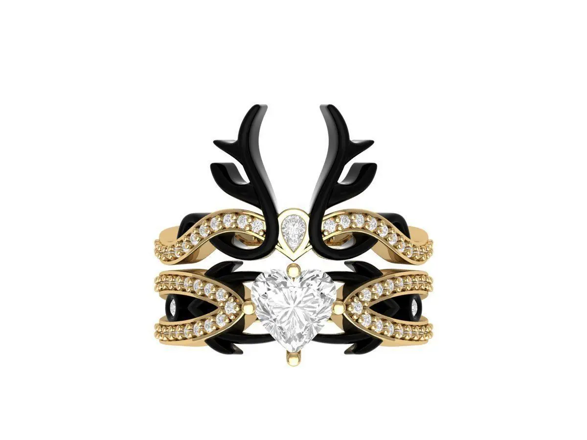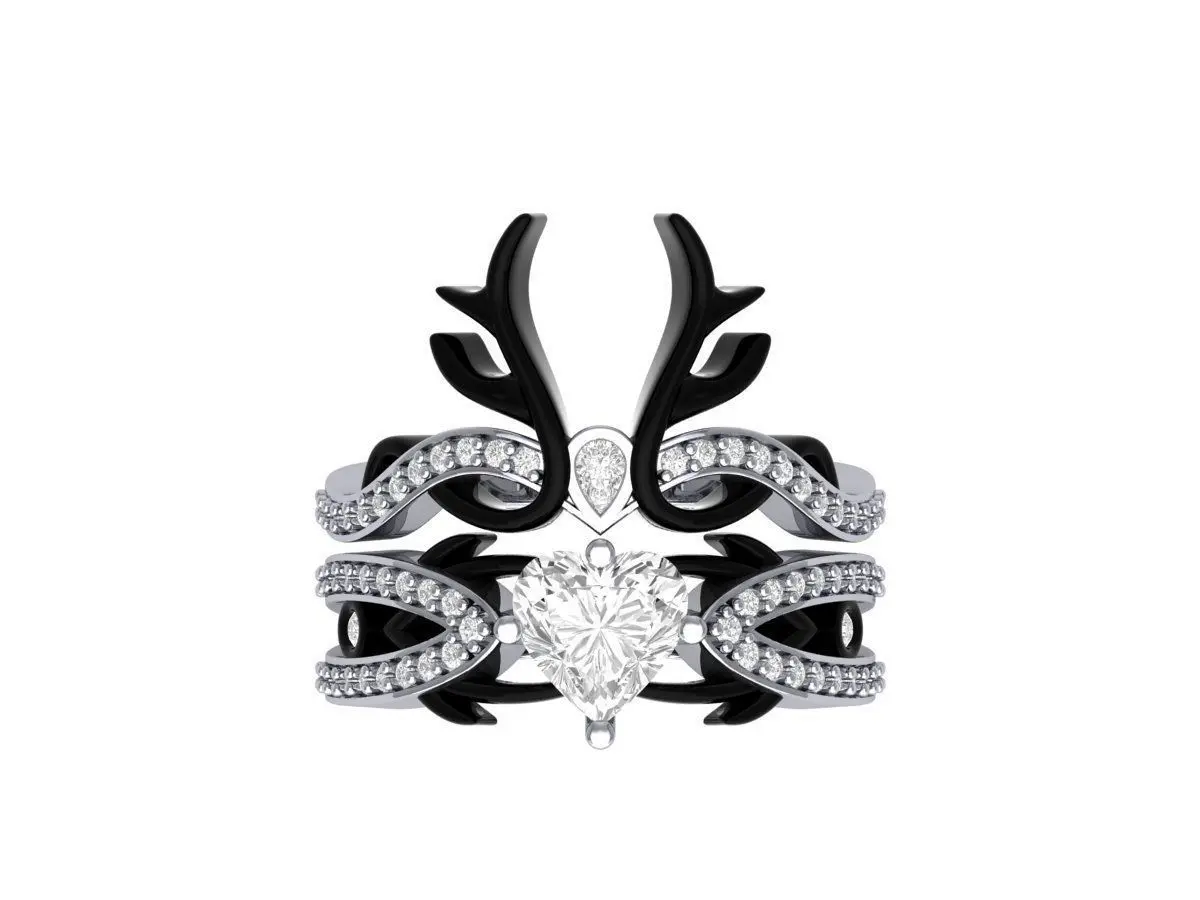 Heart Lab Created Diamond Black Deer Solitaire Gothic Ring Set Heart-Ring,Heart-Ring,Wedding-Ring ,Antique-Ring,Art-Deco-Ring,Ring-For-her,Promiss-Ring,Unique-Ring,Fashio-Ring,Engagement-ringBridal-Ring,Cute-Simple-Nail-Ring,Ring-Gifted-Ring ,Unisex-Woman-Ring ,Soliter-Ring,Single-Stone-Ring,Wedding-Band,Jewellery,Printable,Gold,SilverSilver