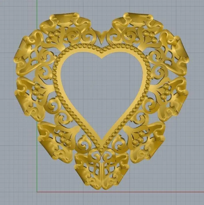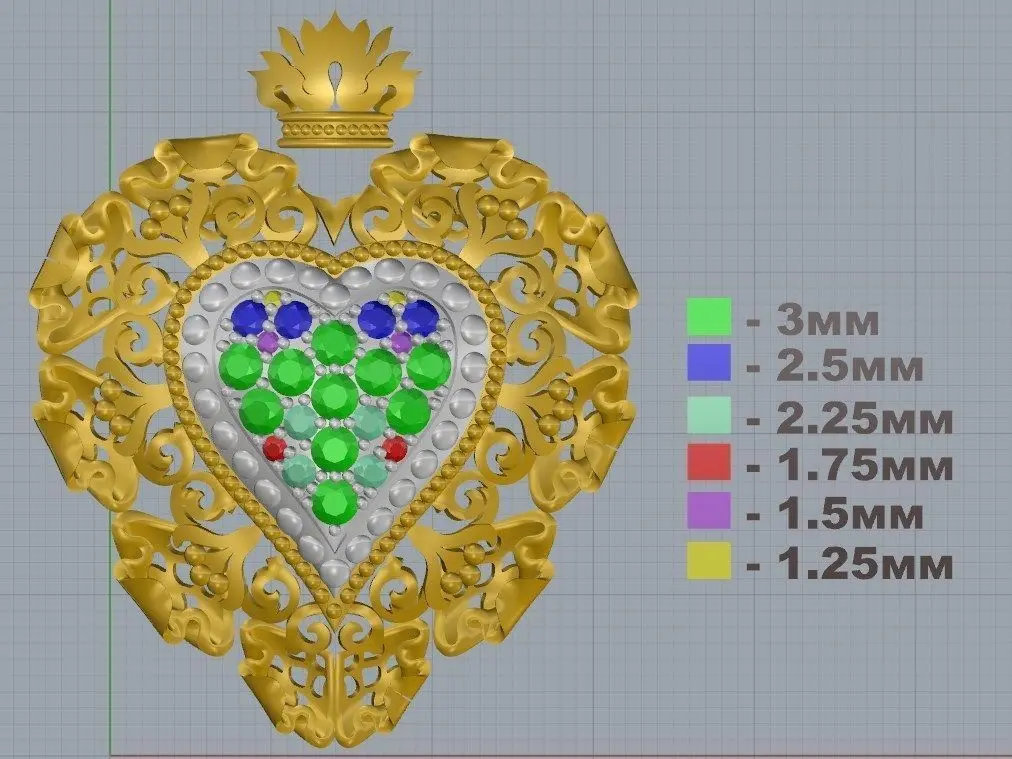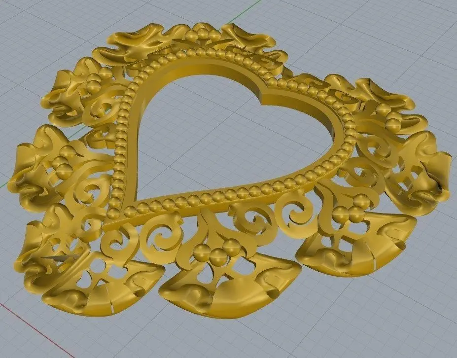 Heart ornate gold brooch with rubies and diamonds 3D print model