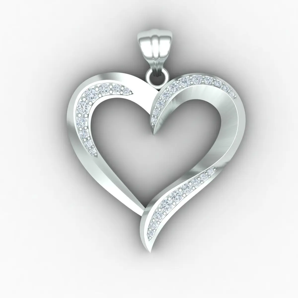 Heart-shaped pendant necklace with round gems. The weight of the pendant is 5.43 grams in 18-karat yellow gold. Its dimensions are 23*32*3.8 mm and The thickness is about 700 microns.The number and size of the gems are as follows:4 pieces, size 1 mm3 pieces, size 1.1 mm3 pieces, size 1.2 mm3 pieces, size 1.3 mm5 pieces, size 1.4 mm3 pieces, size 1.5 mm3 pieces, size 1.6 mm2 pieces, size 1.7 mm2 pieces, size 2 mm