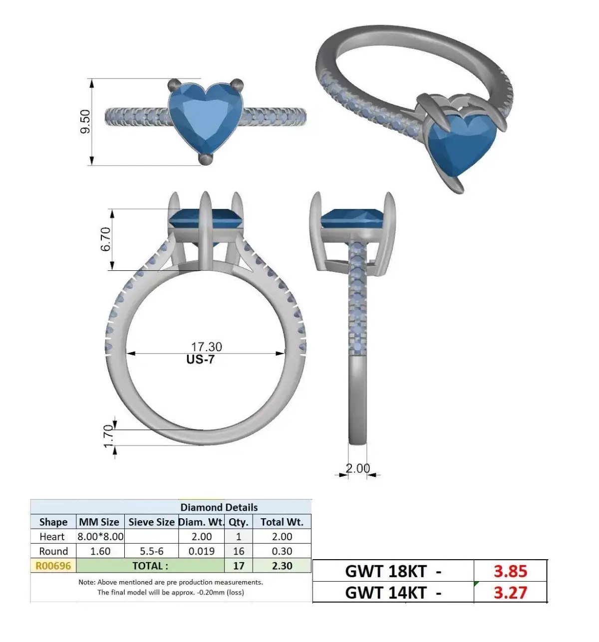 • Heart shape center stone design• Pavé diamond band detailing• Accurate proportions for real production• Clean and optimized mesh• Suitable for casting and 3D printing• Designed for fine jewellery manufacturing• Easy stone setting structure• Professional CAD construction