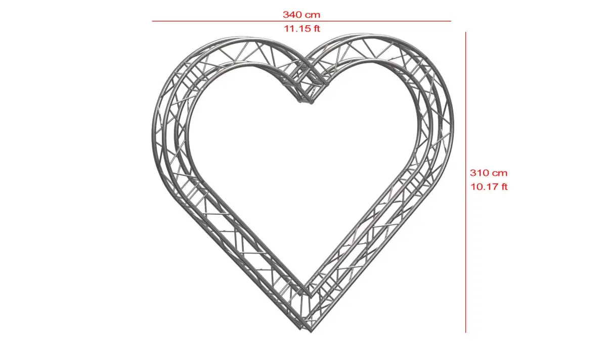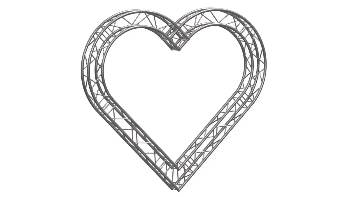 This heart-shaped aluminum truss arch is a decorative 3D stage structure designed for romantic and event-based setups. Ideal for weddings, proposals, Valentine’s events, photo zones, and ceremonial entrances, the model delivers a clean, symmetrical heart silhouette with professional truss detailing.