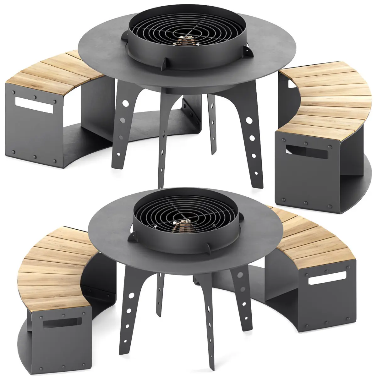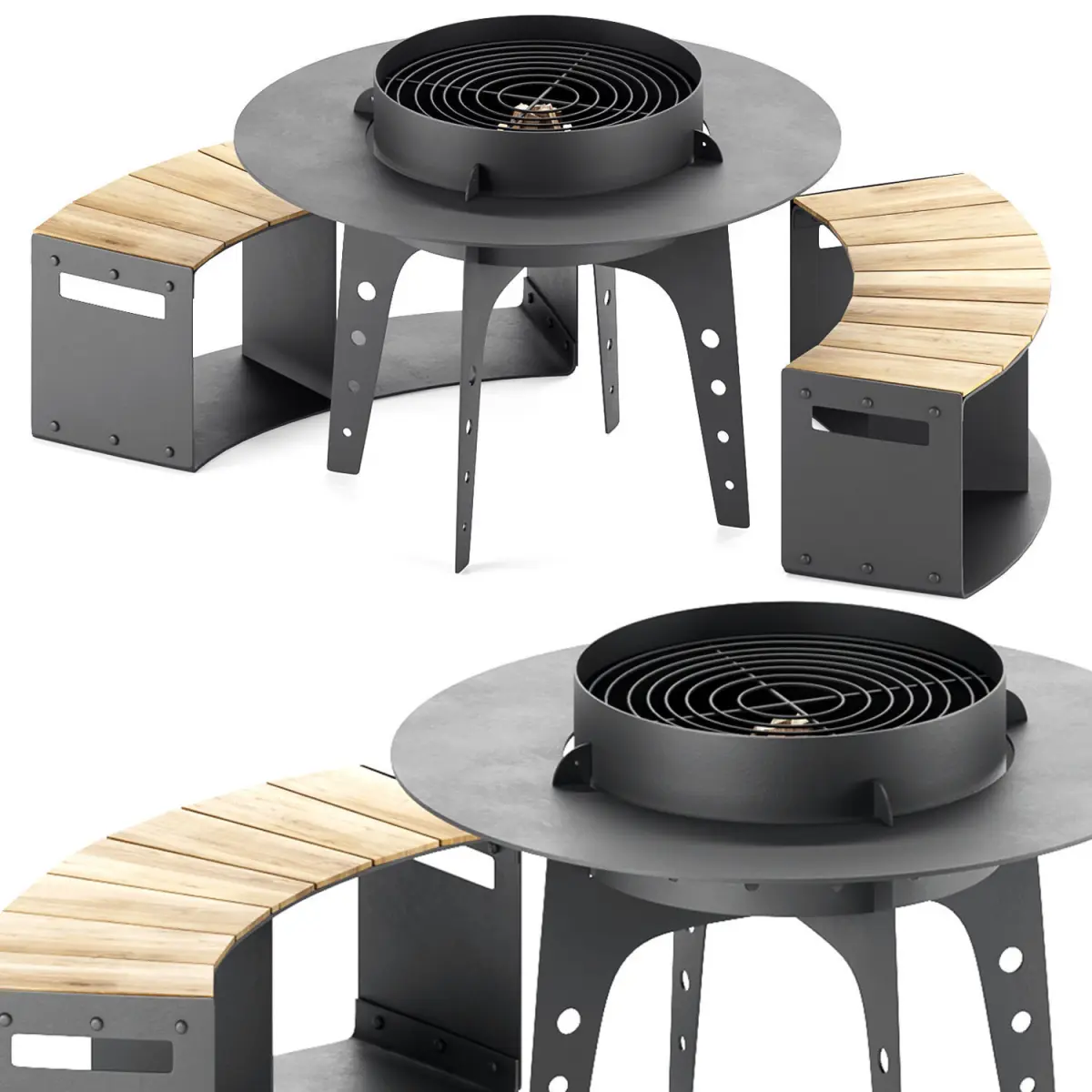 Designed for maximum comfort. The round table top, around the hearth, can be conveniently placed for cutlery, barbecues and drinks. And anyone can feel like a cook and cook themselves delicious food. The size of the hearth is comparable to a dining table, at which a small company can sit comfortably.The metal of the countertop does not heat up.The set for the hearth includes: a grill grate on which you can not only fry meat, but also put a cauldron for pilaf, a cast-iron pan, a grate for steaks, a Dutch brazier and a stone for pizza. A cover that not only closes it from precipitation, but also stops combustion, if necessary.