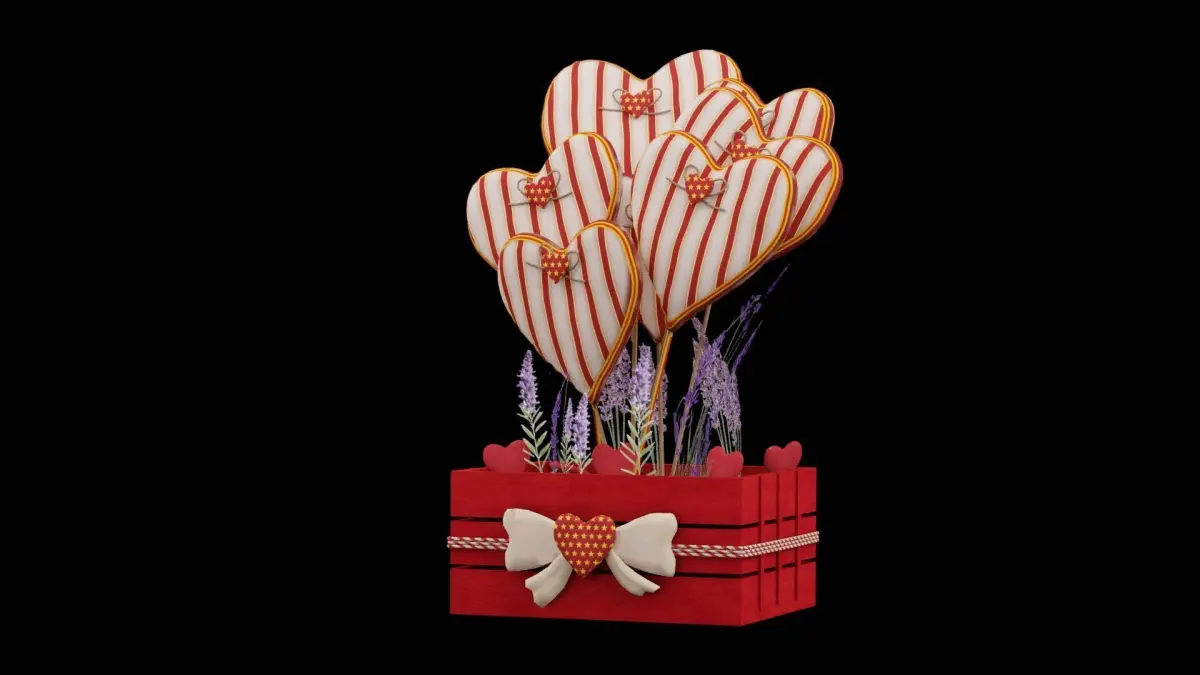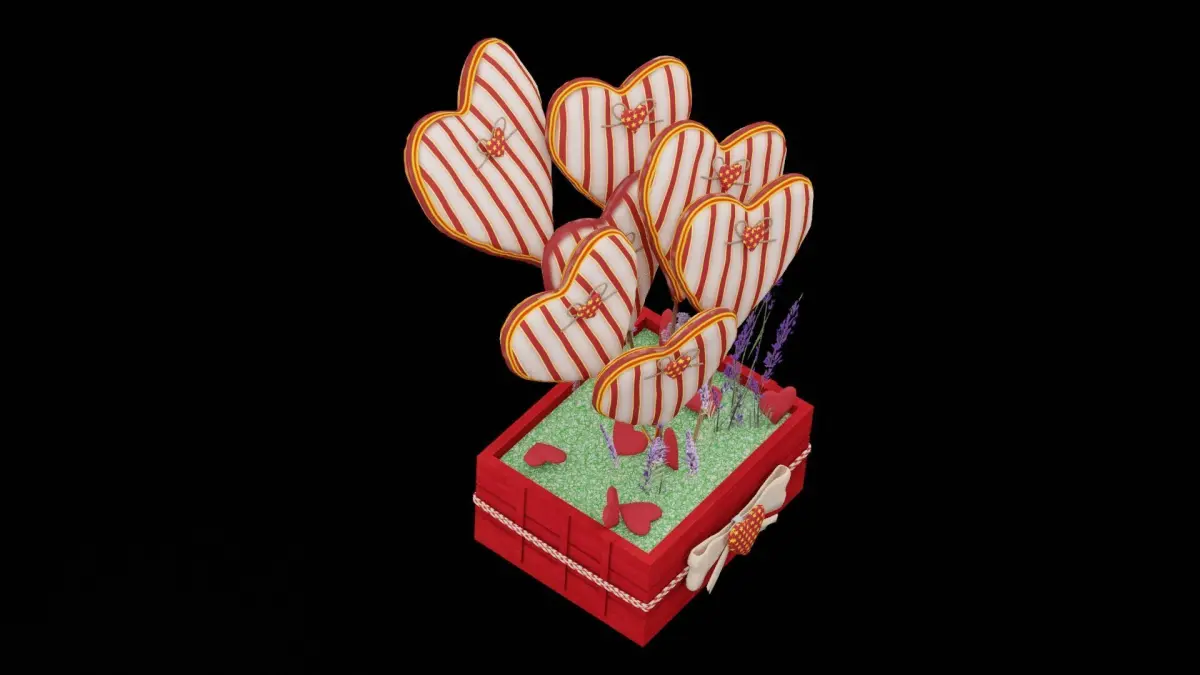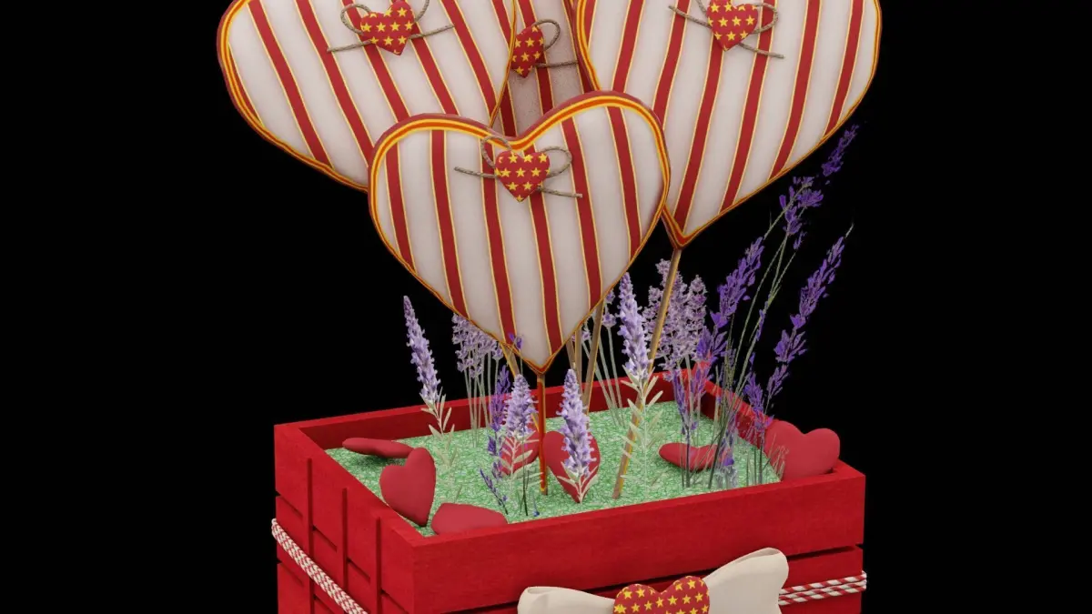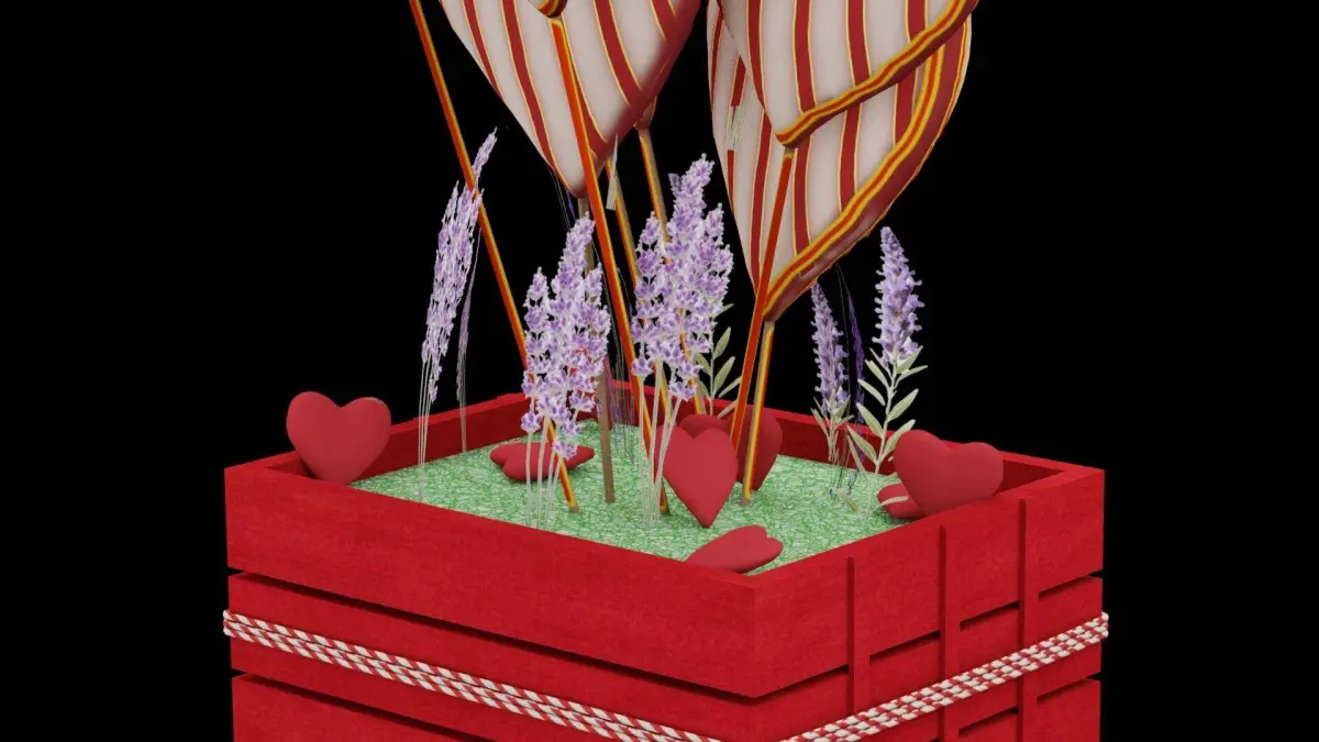 Hearts Boquet With Violet Flowers 3D ModelThis highly detailed 3D model of a heart-themed bouquet with violet flowers is perfect for romantic, wedding, or Valentine's Day scenes. The bouquet features a stunning arrangement of violet flowers, including roses, orchids, and lavender, accented with heart-shaped decorations. Lush green foliage complements the vibrant flowers, and the bouquet is wrapped in elegant tissue paper with heart patterns, tied together with a satin ribbon. Every detail, from the delicate petals to the natural imperfections in the leaves, enhances its authenticity. The model is created with PBR texturing in 4K resolution, optimized topology, and real-world scale. Available in BLEND, OBJ, and FBX formats, this model is ideal for game development, AR/VR applications, and photorealistic visualizations.