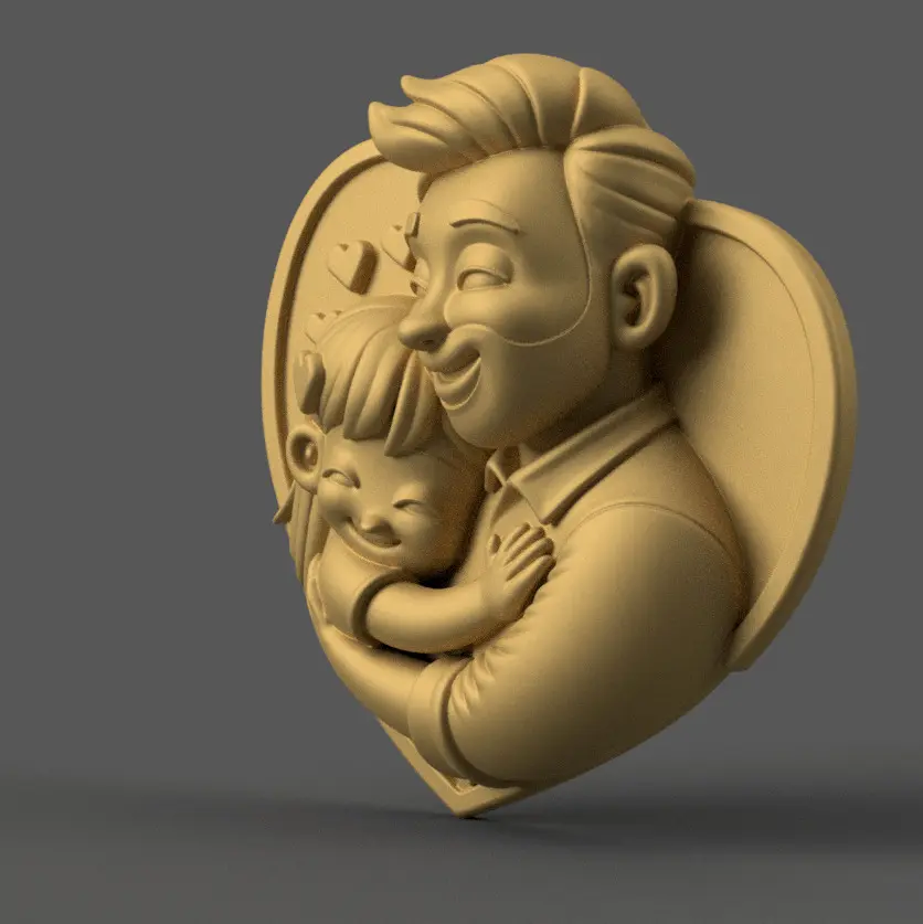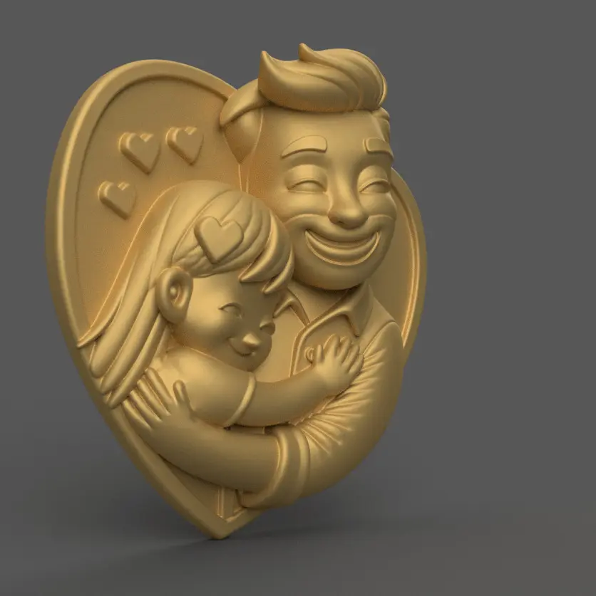 Design ConceptThe design embodies the warmth and affection of the father-daughter relationship, capturing a joyful hug within a heart-shaped backdrop. This piece combines both literal and emotional elements, appealing to those who cherish family ties.