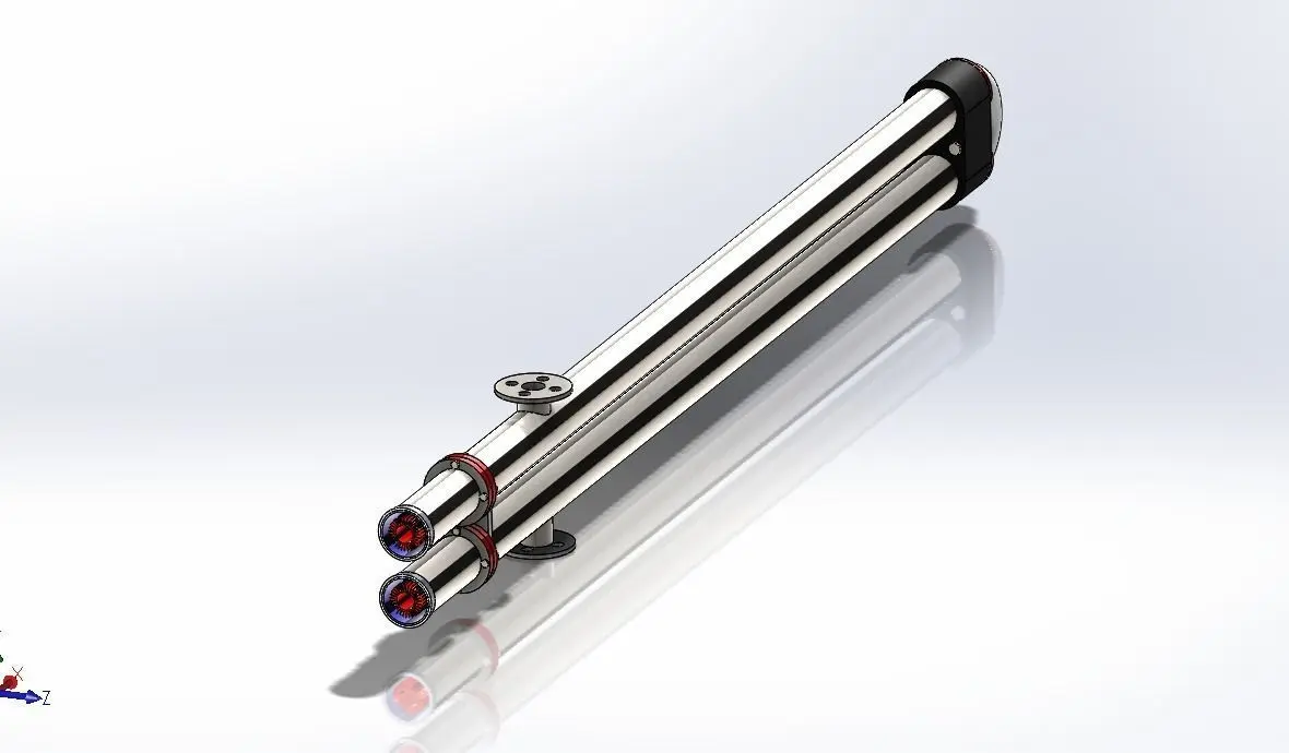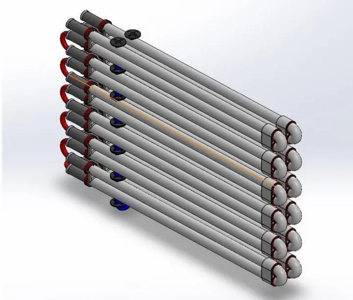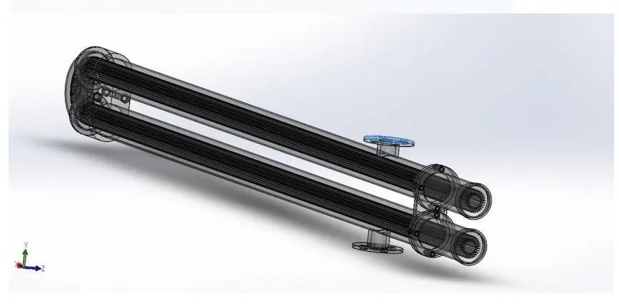 A hairpin heat exchanger can be described as a single-pass shell-and-tube unit that has been folded in half to give it a hairpin appearance. ... Hairpin heat exchanger closures allow for a removable tube bundle and accommodate thermal expansion without requiring expansion or packed joints.Hairpin exchangers are jacketed 'U' tube exchangers operating in a true countercurrent flow, allowing also temperature cross (hot fluid outlet temperature is below cold fluid outlet temperature) with a very efficient design.In this desing we have a studied model, with the solidworks drawings for every part, with the the study repport in needed.
