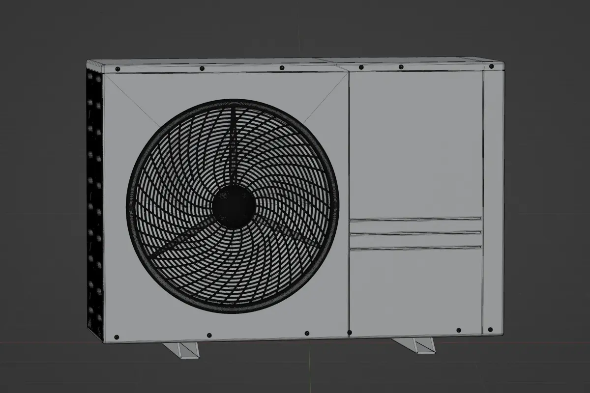 Heat pump is a high quality model. Fully detailed, textured model. Detailed for close-up renders.