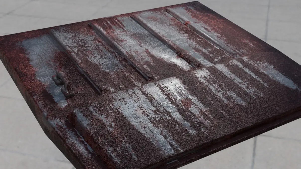 - A lowpoly rusted metal squared fallover-type door mesh with textures (uploaded seperatedly and also with each of the formats)