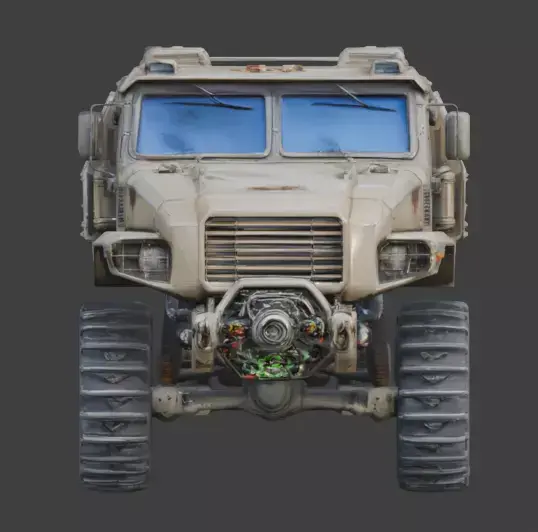 Intricate Mechanical Detailing: High-fidelity modeling of the front-mounted winch, exposed wiring, radiator grille, and armored periscope units.