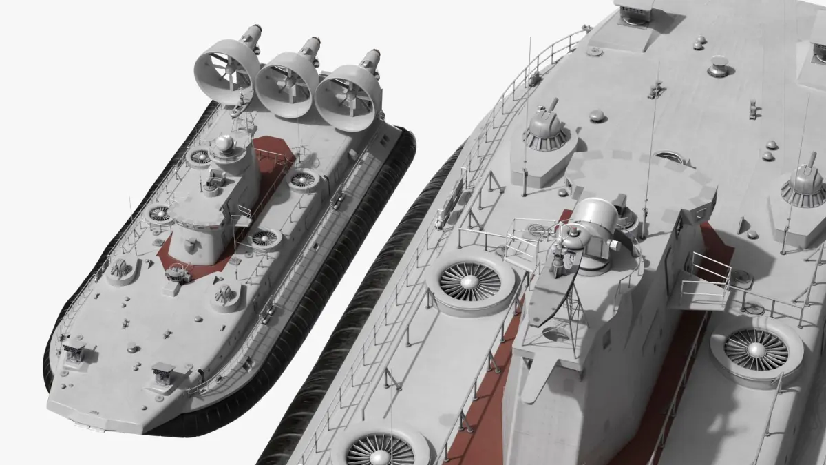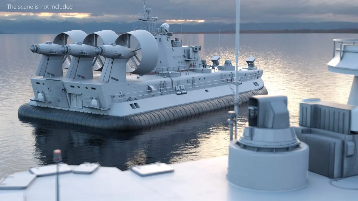 Heavy Assault Hovercraft with Propulsion Turbines Gray Simplified is a 3d model of a large hovercraft used primarily for military operations, often referred to as the Zubr-class LCAC.