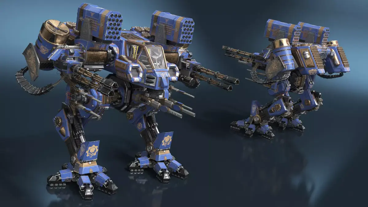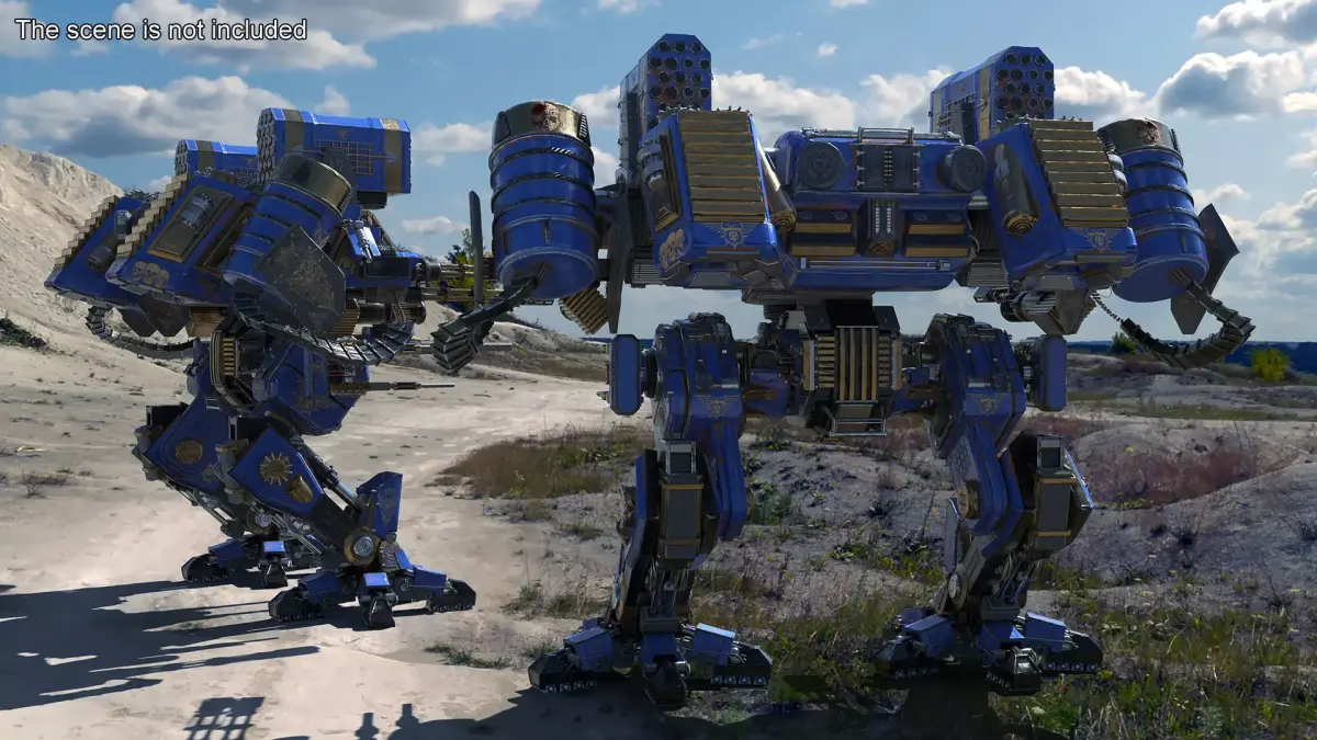 Heavy Assault Mech Walker Blue Warhammer Style is a high quality, photo real 3d model that will enhance detail and realism to any of your rendering projects. The model has a fully textured, detailed design that allows for close-up renders, and was originally modeled in 3ds Max 2020 and rendered with V-Ray. Renders have no postprocessing!