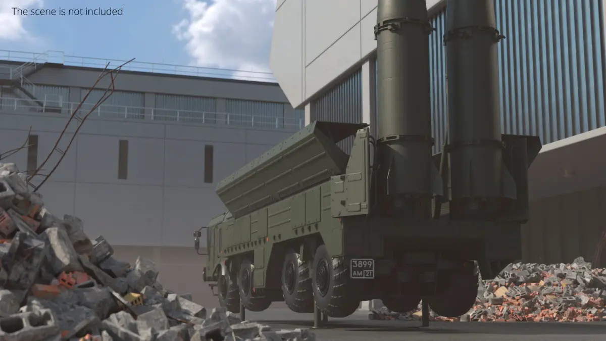 This model accurately represents the military vehicle with distinct features, including the launcher section, missile compartments, and detailed cab design. The model highlights the rugged build and large wheels, optimized for rough terrains. It serves as an essential tool for military training simulations and educational purposes.