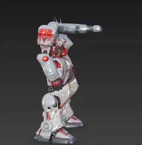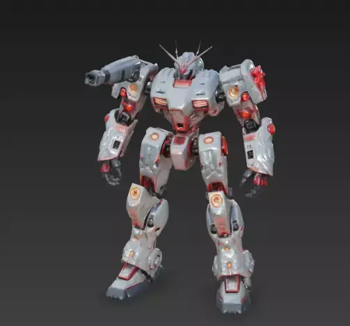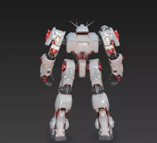 TagsMecha Robot SciFi Combat Military Heavy Armor WarMachine Worn Battle Gray Red Gun Prop GameAsset FPS Simulation Tech Futuristic Collectible