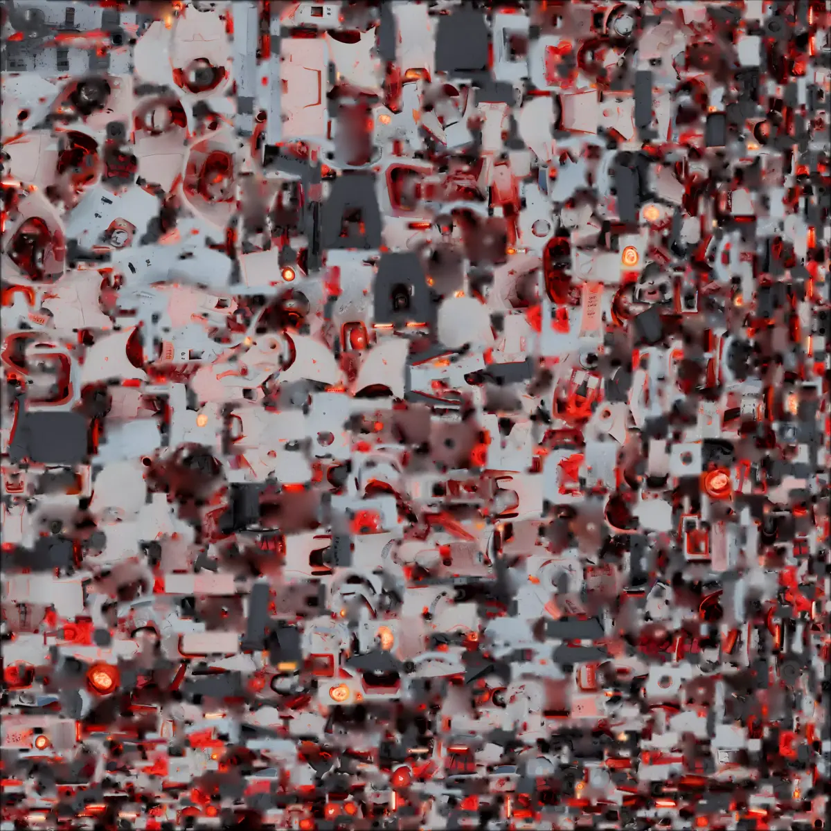 Energy Accents: Vents and internal lights glow with a subtle crimson red, suggesting active power.