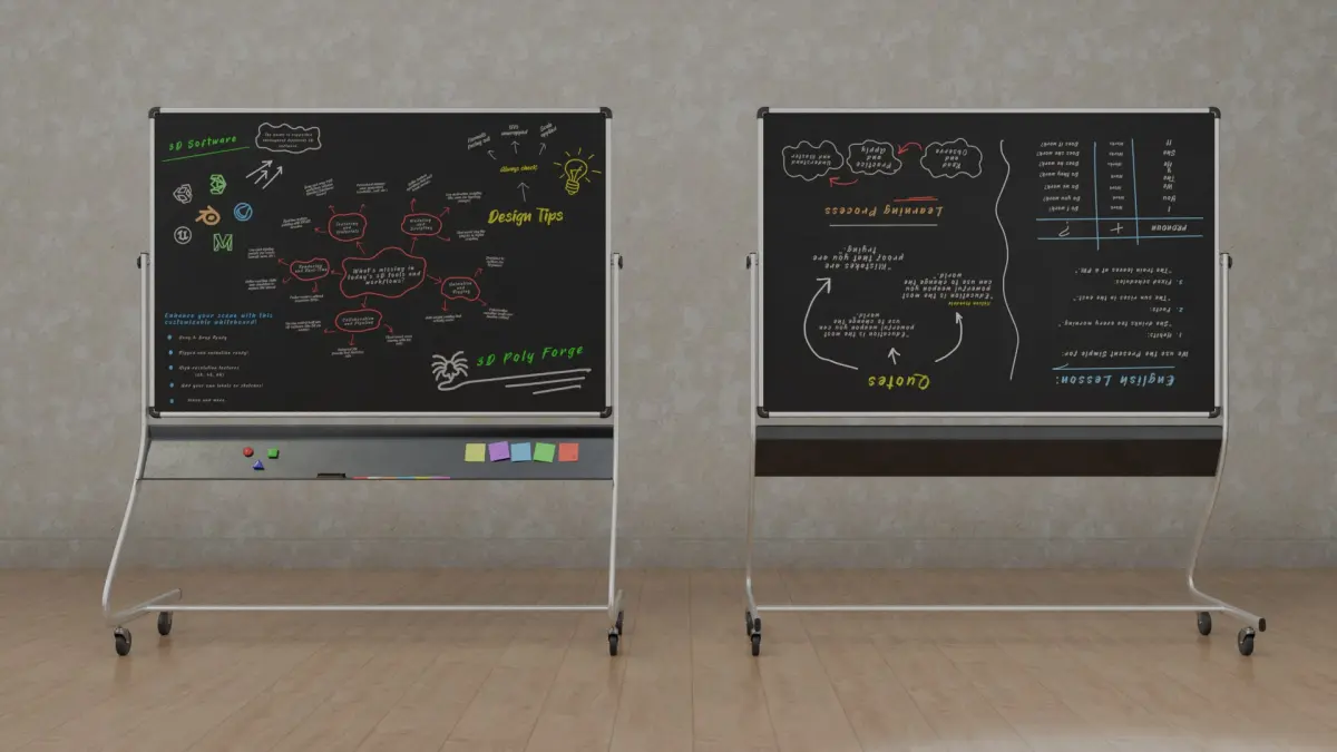 A high-quality 3D asset pack featuring professionally designed writing boards (blackboard, greenboard, and whiteboard), available in both wall-mounted and freestanding configurations. These models are ideal for architectural visualization, virtual training, game environments, and educational simulations. Each model is meticulously optimized with clean topology and realistic textures for seamless integration into digital projects.