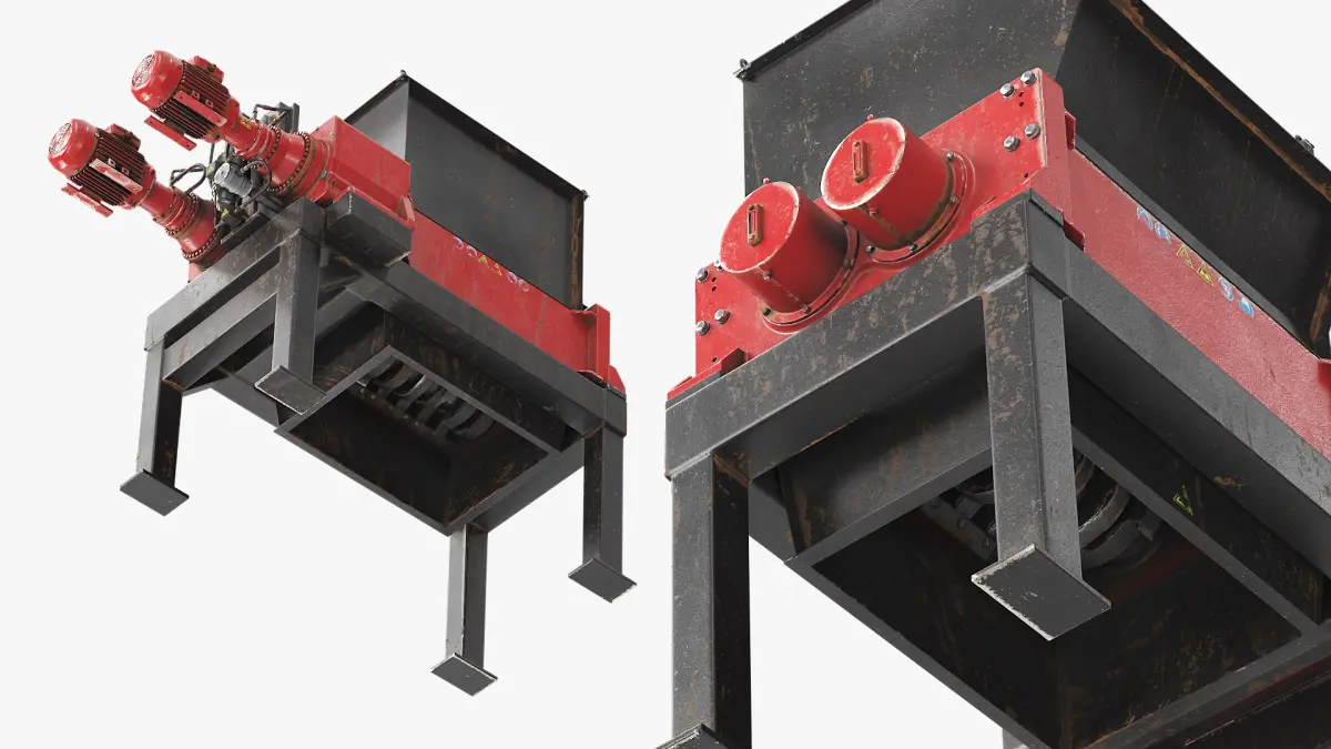 Heavy Duty Material Shredder with Hopper Used is a high quality, photo real 3d model that will enhance detail and realism to any of your rendering projects. The model has a fully textured, detailed design that allows for close-up renders, and was originally modeled in 3ds Max 2020 and rendered with V-Ray. Renders have no postprocessing!