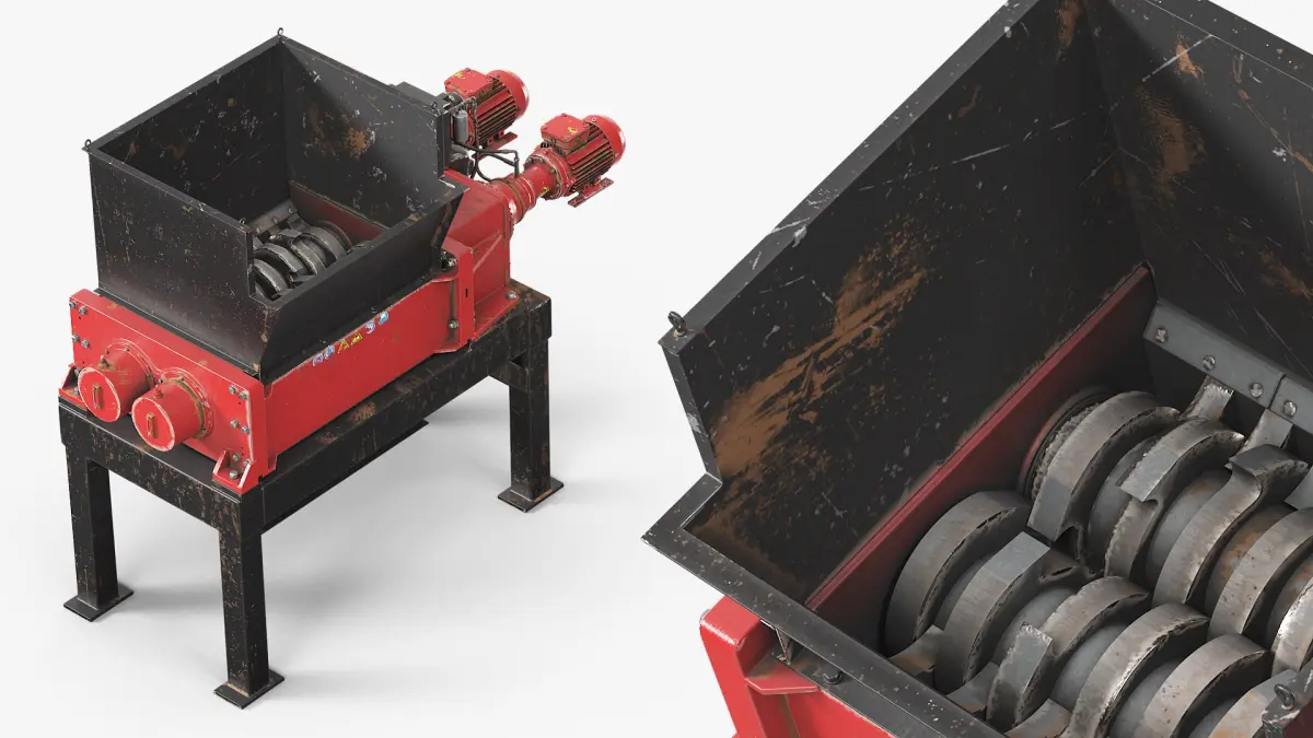 Heavy Duty Material Shredder with Hopper Used is a three-dimensional model of industrial shredding machine designed for continuous material reduction operations.