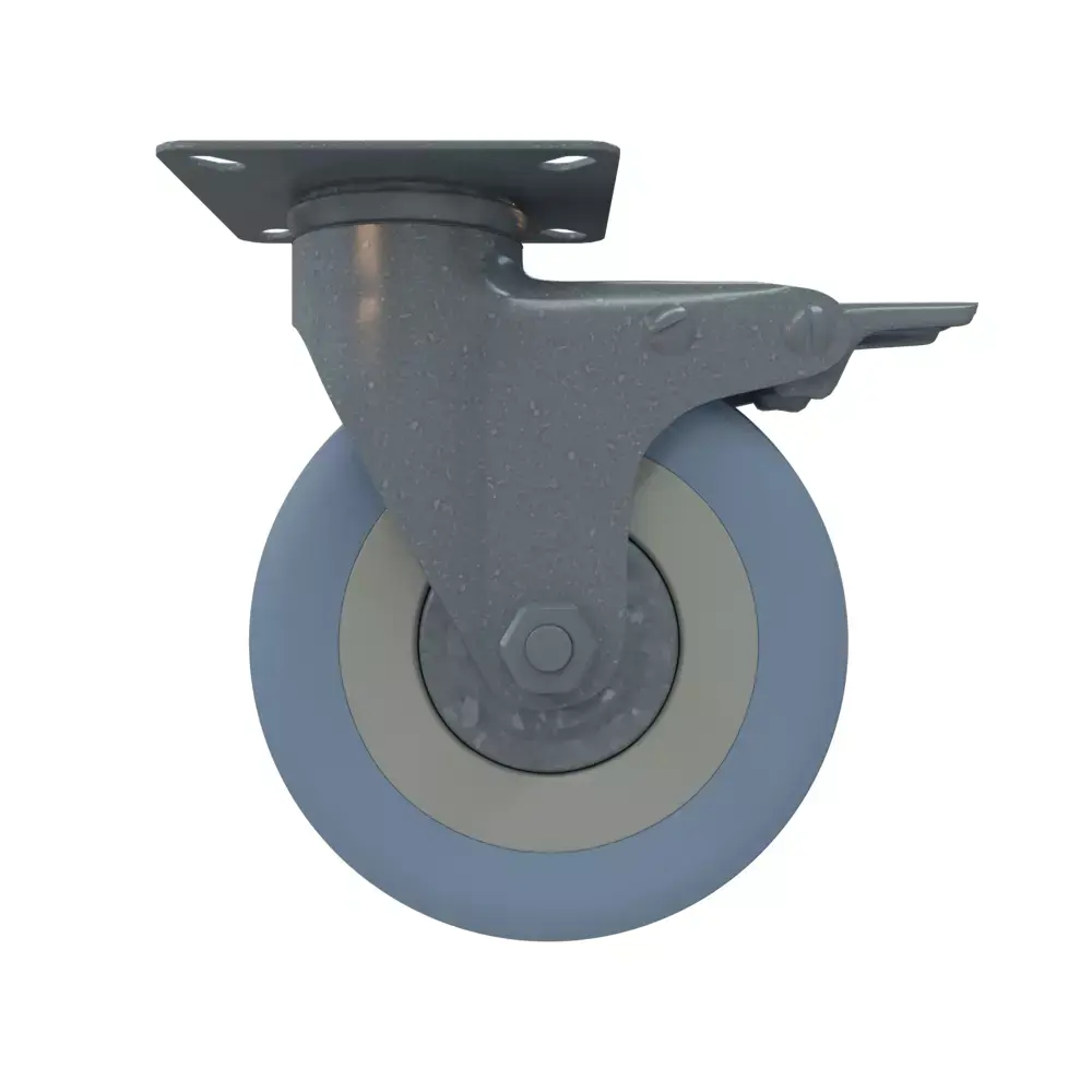 This is a high-quality 3D model of a heavy-duty swivel caster wheel with a top mounting plate, ideal for furniture, trolleys, industrial carts, and equipment visualization. The model is optimized for both close-up renders and real-time applications.