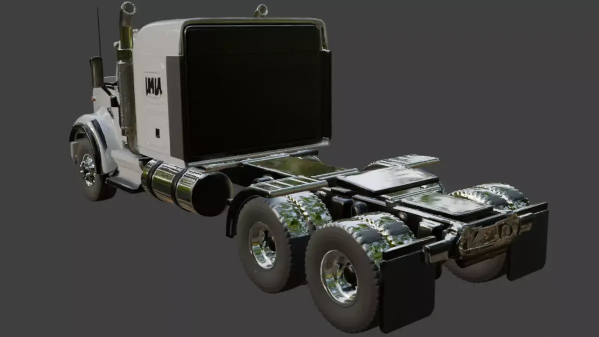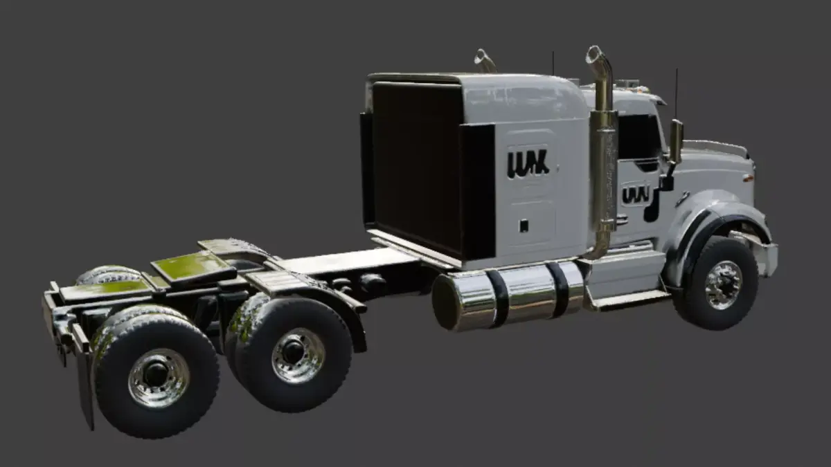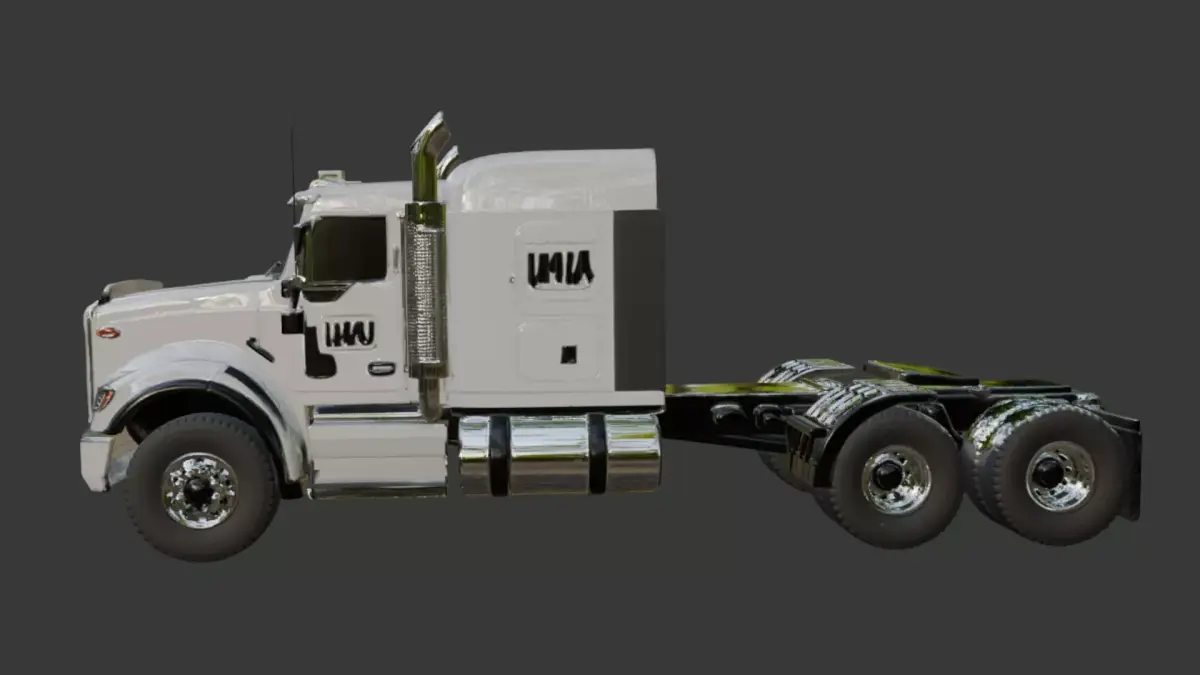 This is a detailed 3D model of a heavy-duty truck featuring the xAI branding prominently on its side and cab. The model showcases a sleek white design with chrome accents, dual exhaust stacks, and a robust grille, making it a realistic representation of a modern semi-truck. Ideal for simulations, animations, or promotional content.