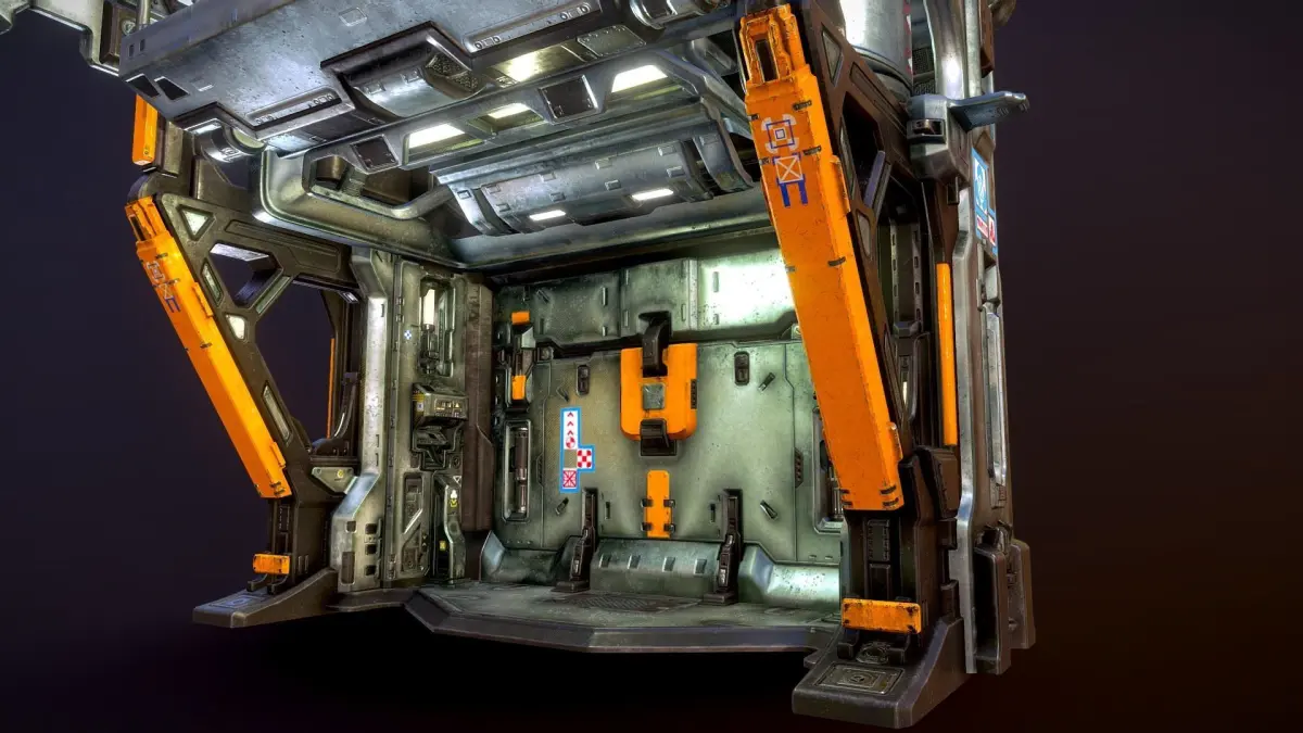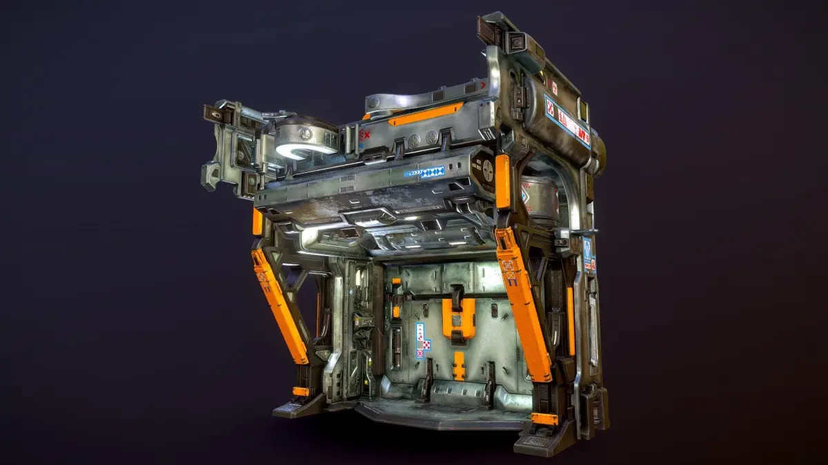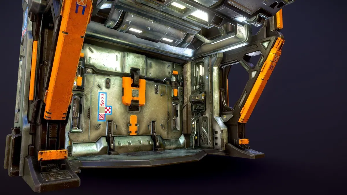 - A FBX, OBJ, and ABC mesh export of the low-poly blast door model