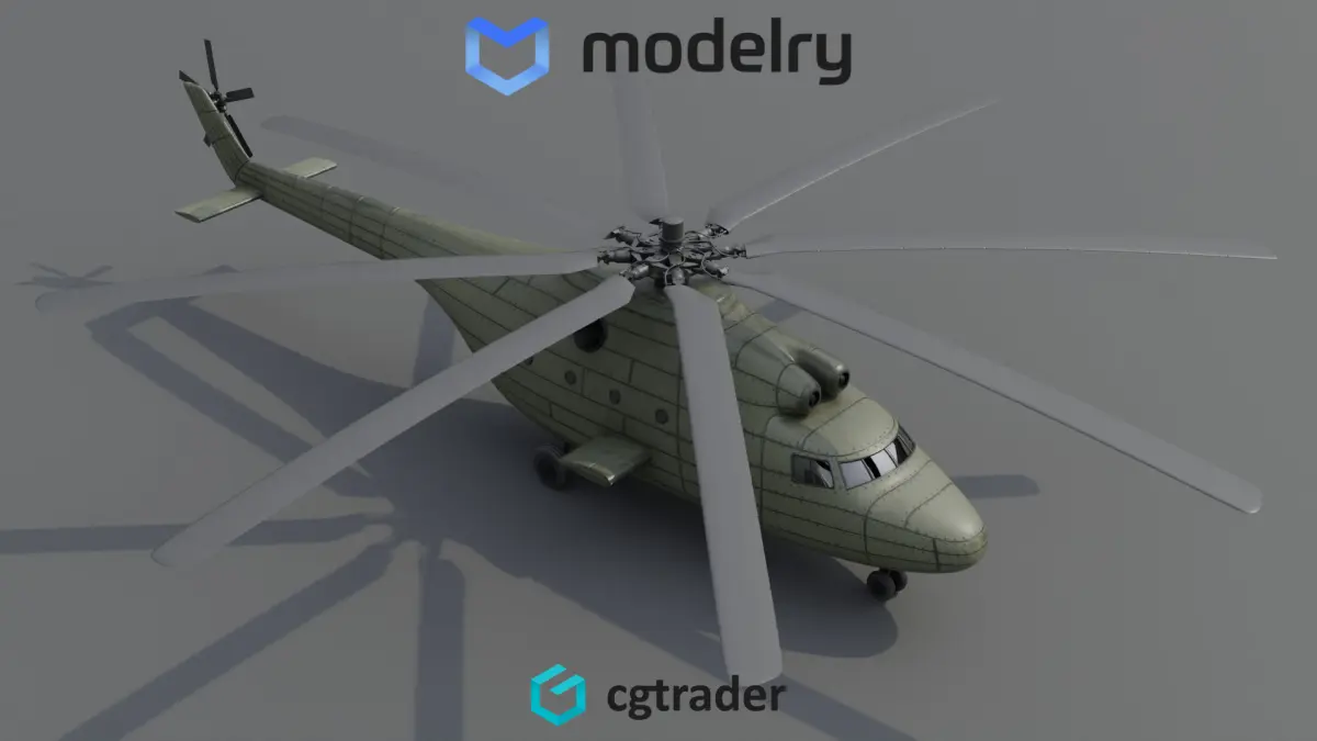 A heavy-lift helicopter in a camouflage pattern, with a rugged design and powerful engines, tailored for heavy-duty missions in the contemporary world.