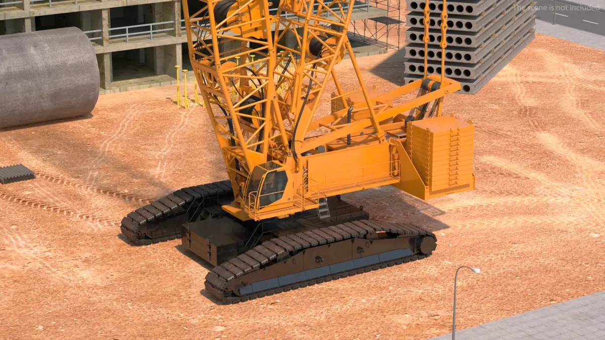Heavy Lifting Crawler Crane Yellow Rigged for Maya is a three-dimensional model of large tracked crane, also known as a heavy-duty crawler crane, that is a robust lifting machine designed for construction and industrial use.