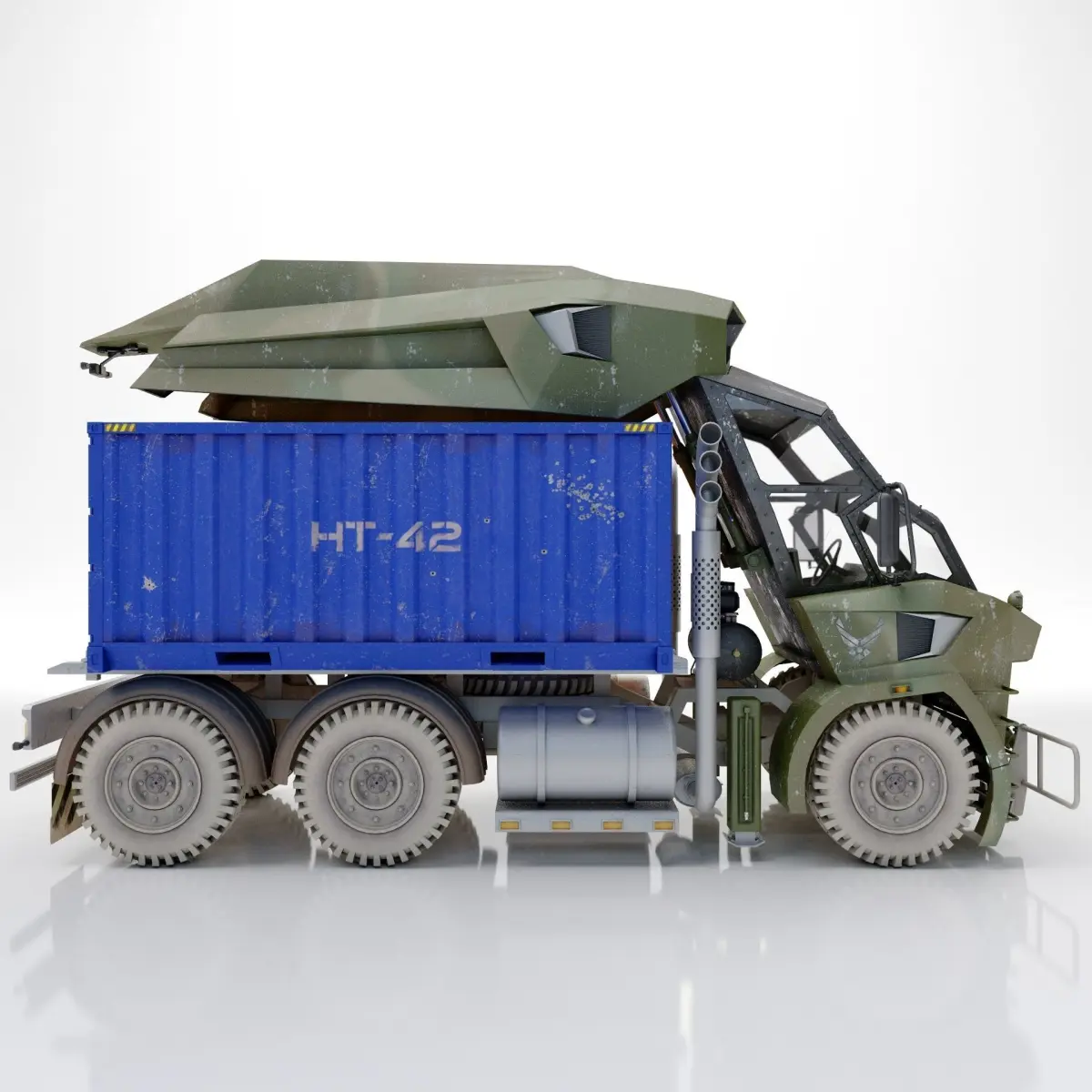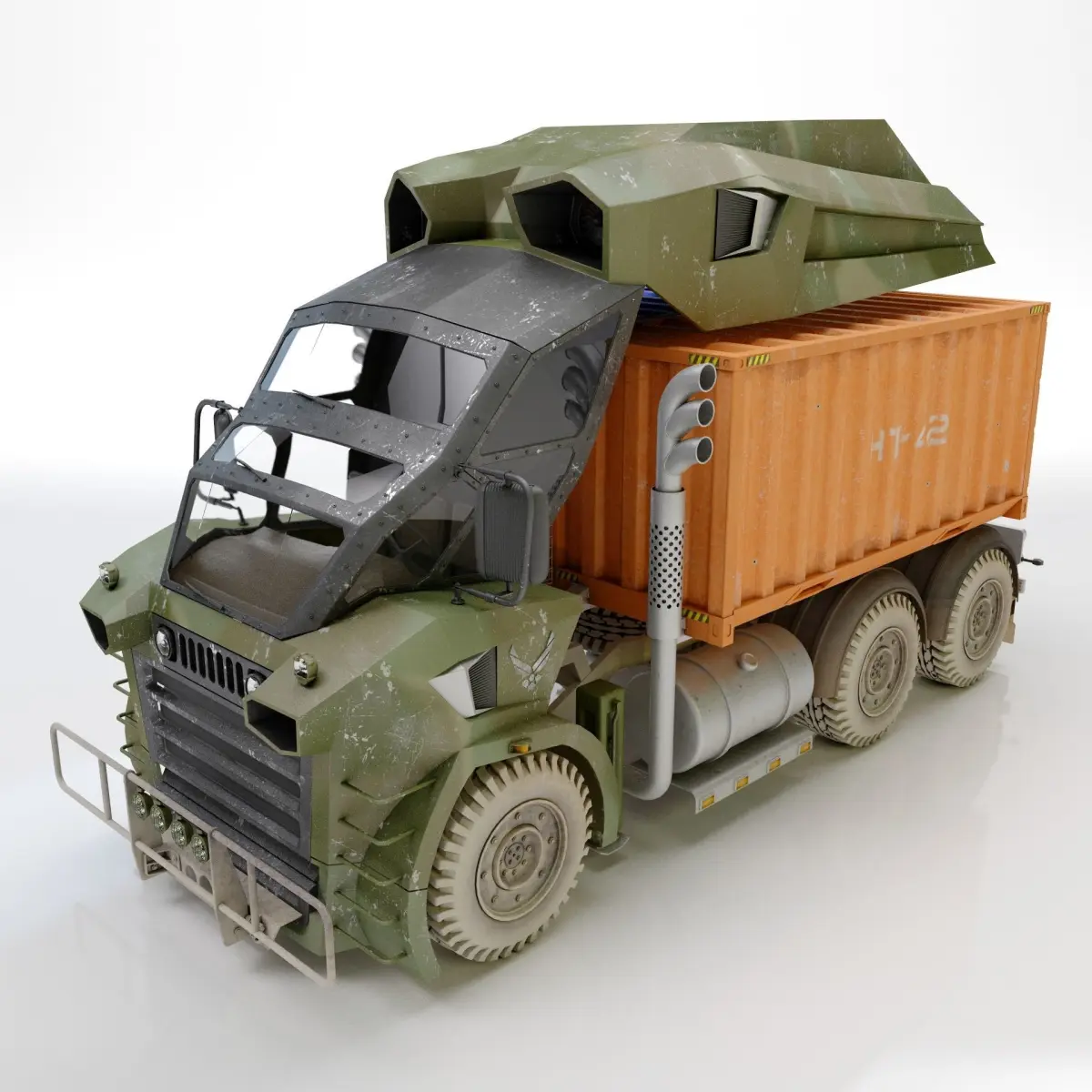 A high definition model heavy military truck 6x6. The Max 2020 version comes with both standard and V-Ray materials.The previews were rendered with V-Ray.