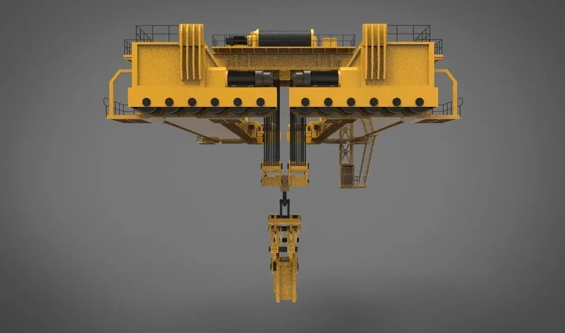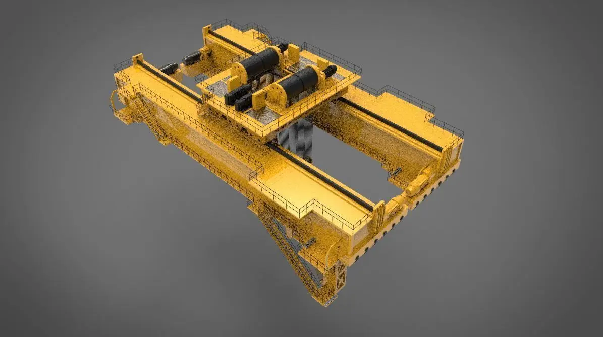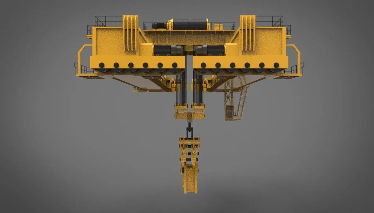 A 3D model of a heavy overhead crane is an indispensable asset in industries such as manufacturing, shipping, and construction, offering a precise and comprehensive visualization of this critical equipment. The model meticulously depicts the crane's robust framework, including the girders, trolley, hoist, and hook mechanism, allowing for detailed analysis and optimization. By leveraging this 3D representation, engineers and designers can simulate the crane's movements, load capacities, and structural integrity under various conditions, facilitating improved design accuracy and operational efficiency. Additionally, such models are instrumental in planning installations, conducting virtual training sessions for operators, and ensuring adherence to safety standards, ultimately enhancing productivity and reducing risks in environments that demand heavy lifting and precise material handling.