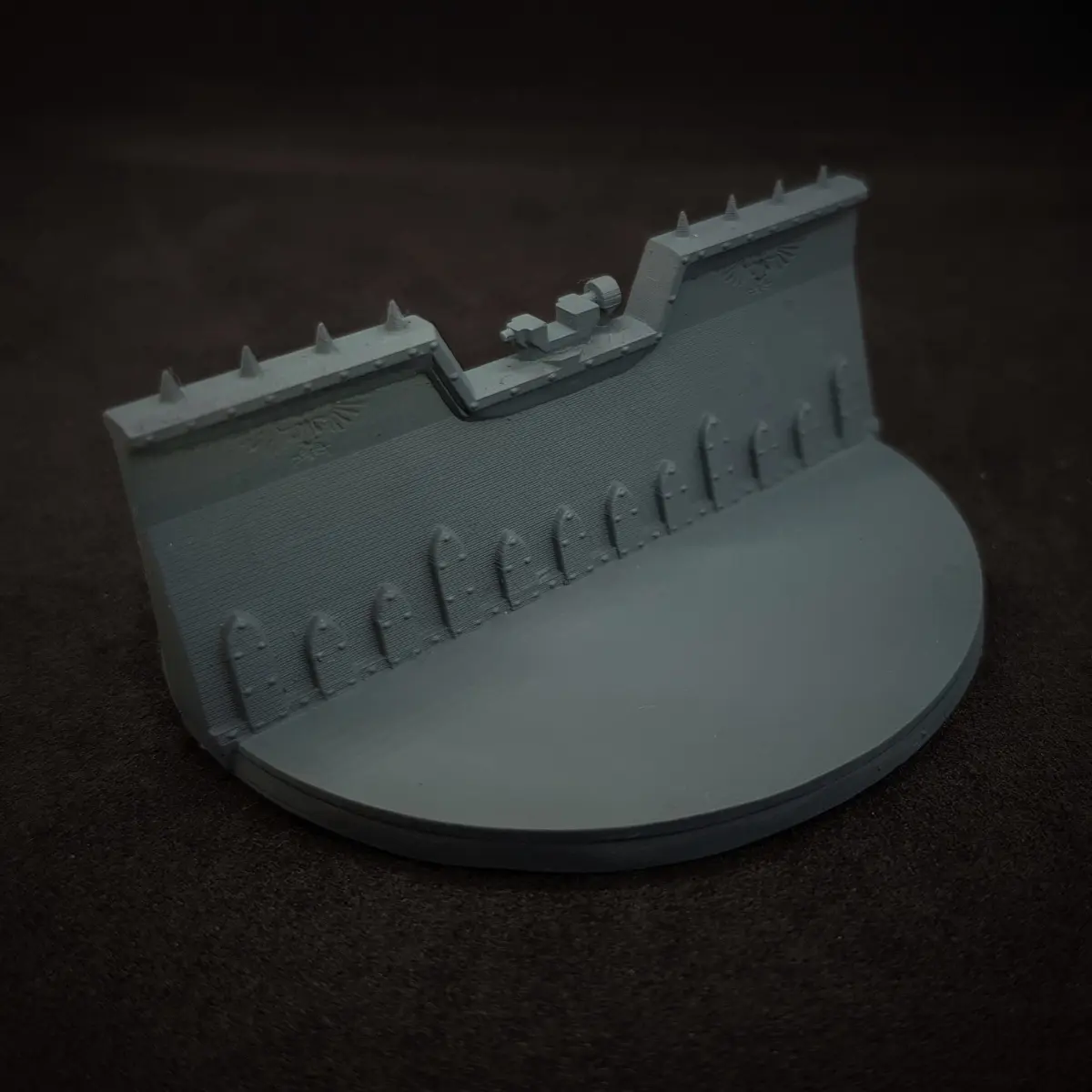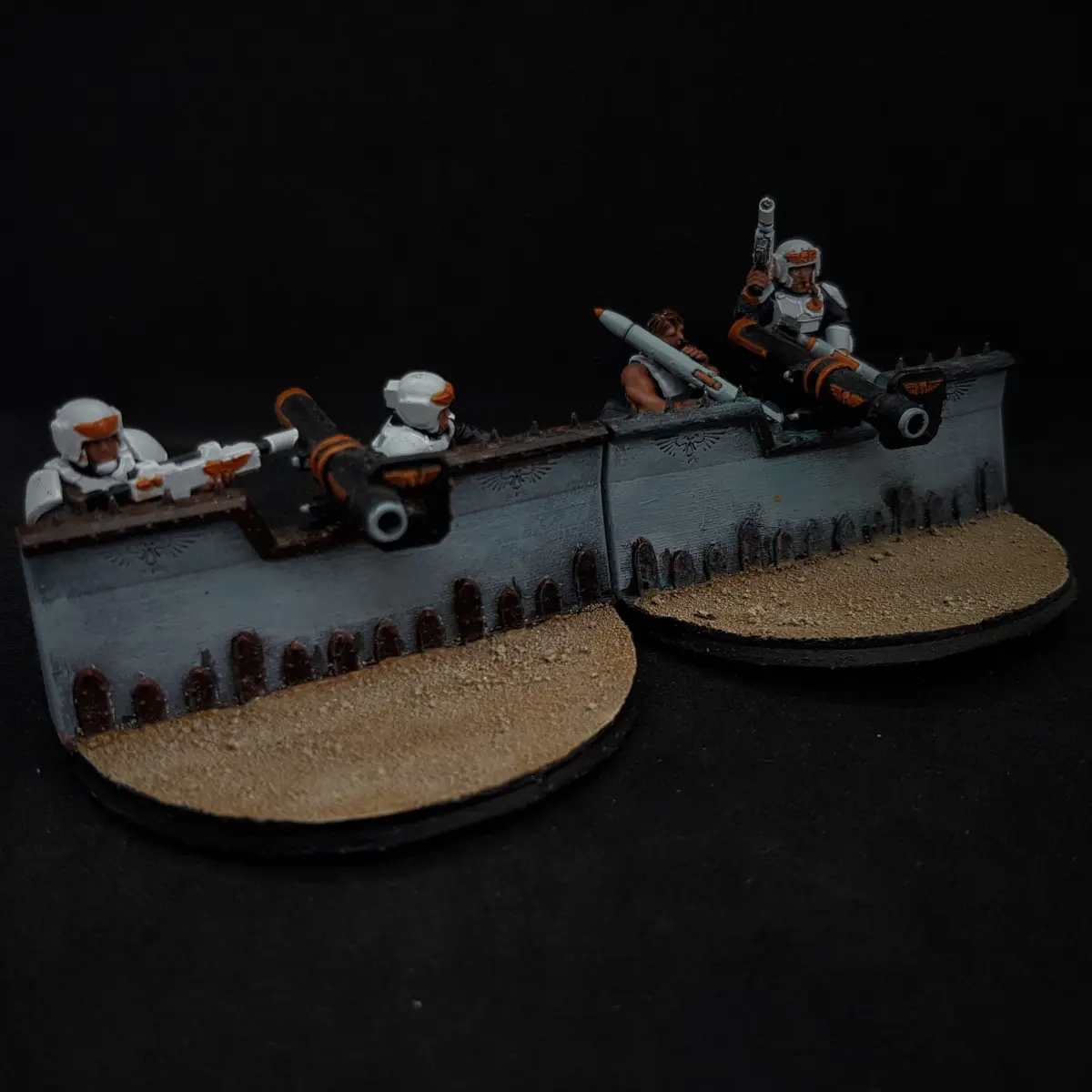 A fortification/barricade with mounts designed to fit 28mm scale heavy weapons.