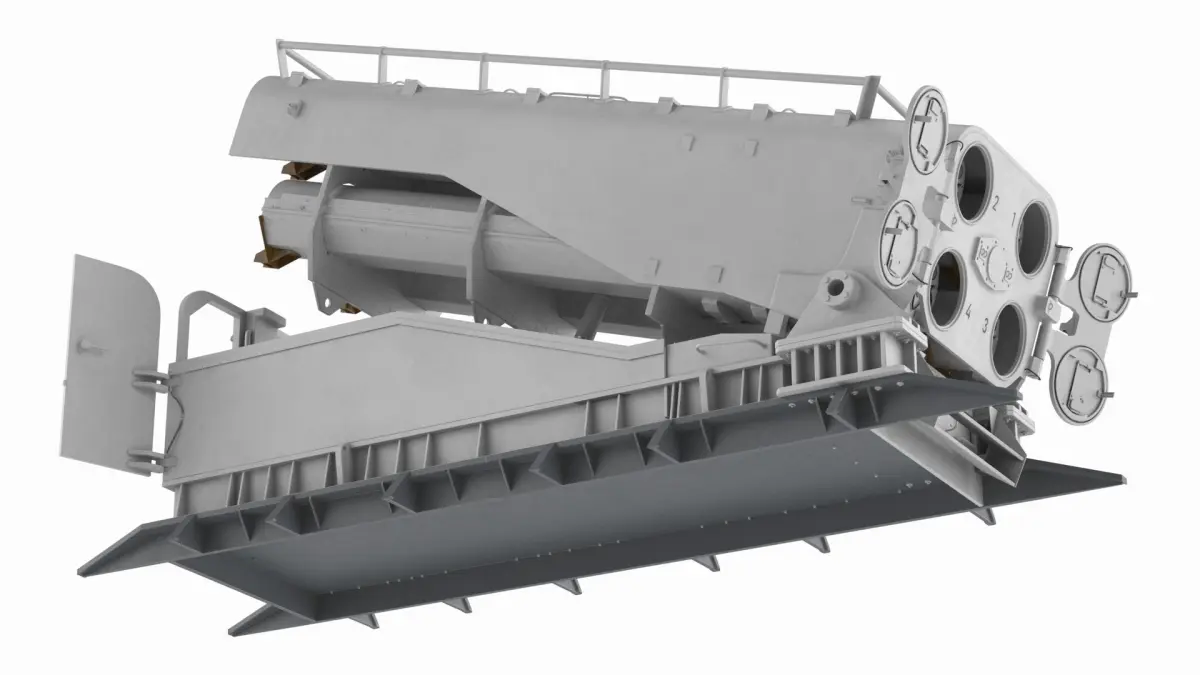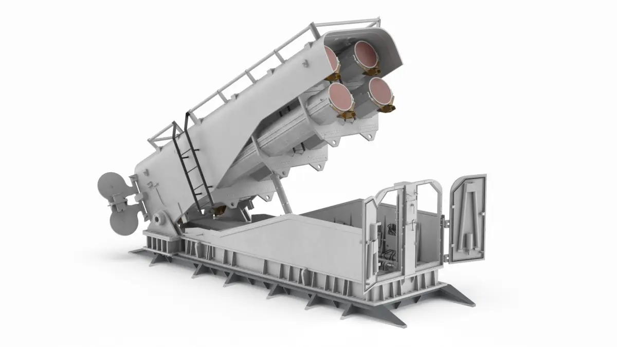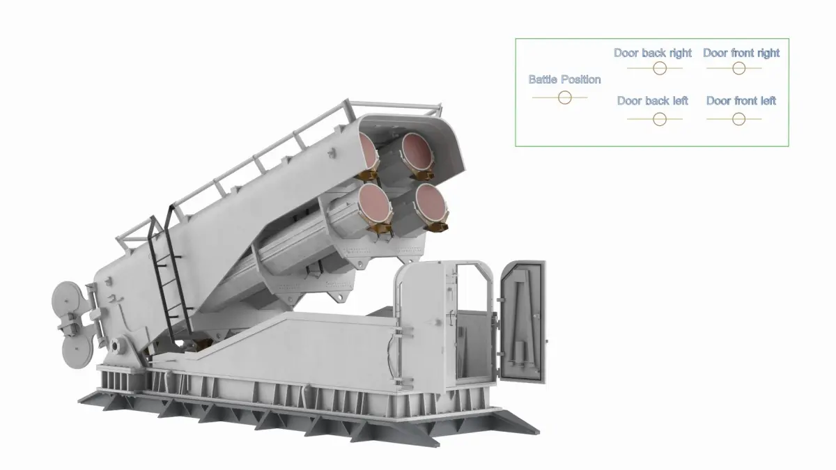 Heavy Weapon Launcher Open Light Gray Rigged is a 3d model of a military weapon system designed for launching anti-ship missiles from naval platforms.