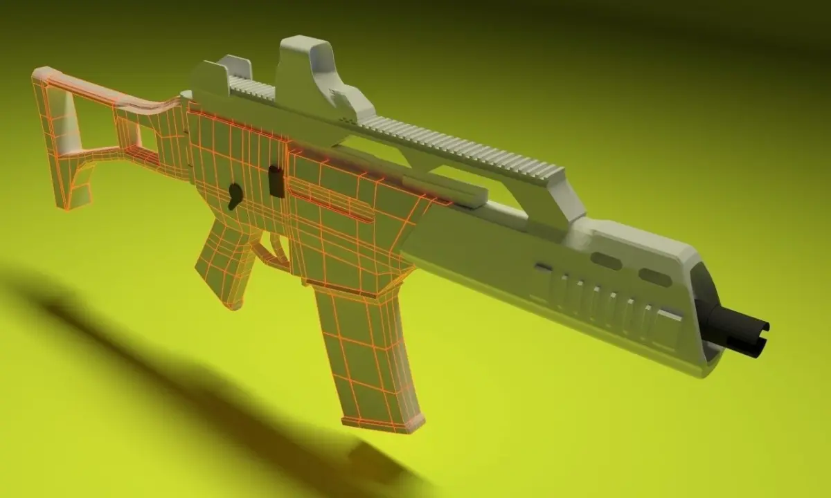 Creative semi-wireframe model of G36C rifle with scope made in blender 2.72b. The rifle is made up of different seperate part distinctly. Its a low poly untextured model.Hope you like it.