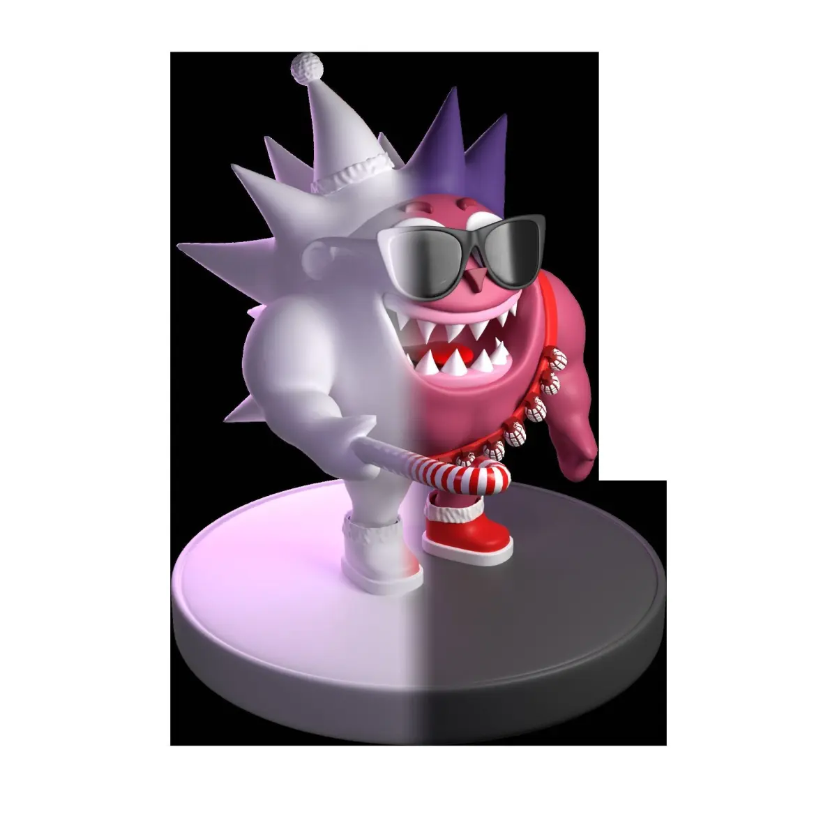 A charming 3D model featuring the beloved hedgehog character from the animated series Smeshariki. Dressed in a festive New Year's hat with a playful and spirited expression, the hedgehog is adorned with grenades on its belt, adding a touch of whimsy to the design. An animated 3D model of a hedgehog in a festive New Year's hat, armed with a holiday staff and a set of grenades. Emitting a wild gaze and brimming with Christmas spirit, this hedgehog is a vibrant rendition with a distinctly expressive character and unique charm.