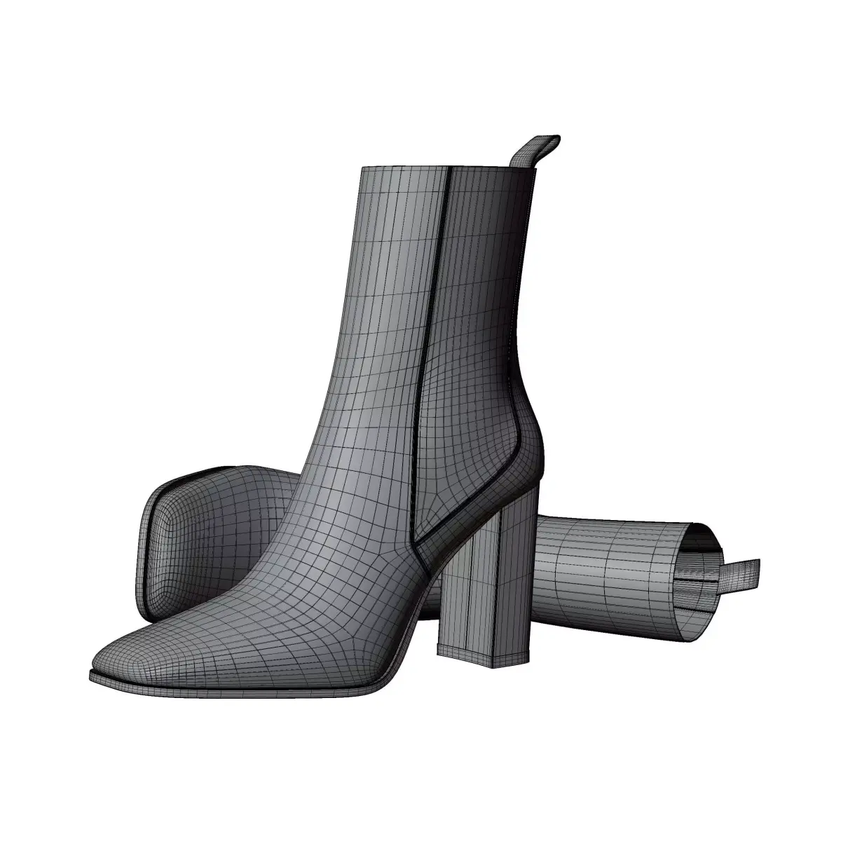 A detail women shoes named heel boots. Its a photorealistic 3d model made in blender, than use as any acctractive decor item for product visualization.