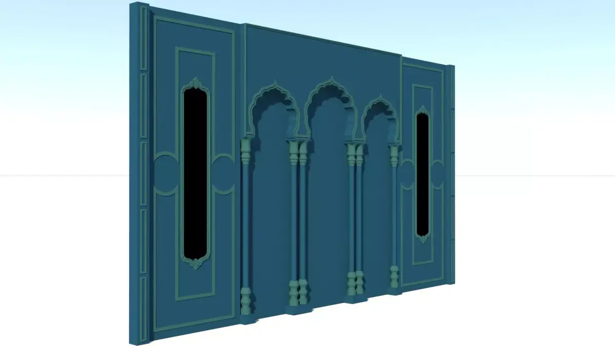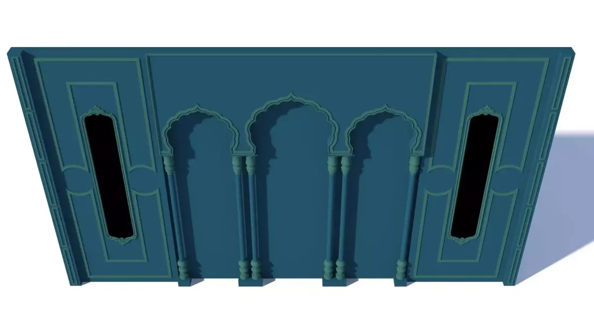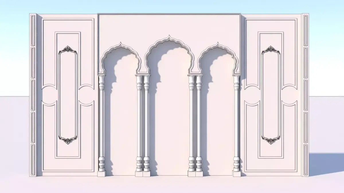 The Heera Mandi Wall Panel 3D Model is inspired by the opulent architectural heritage of historic courtesan havelis, reflecting timeless Mughal and Indo-Islamic aesthetics. The panel features intricate floral and geometric relief work, gracefully carved arches, and ornamental borders that evoke the richness and elegance associated with royal-era interiors. Fine surface detailing, layered depth, and balanced symmetry enhance its visual realism and premium appeal. Designed with high-quality topology and clean geometry, the model is ideal for luxury interior visualizations, heritage-themed décor, wedding stage backdrops, and cinematic environments. Its refined textures and sculpted patterns create a sense of grandeur, making it a striking focal element in both traditional and fusion design concepts.