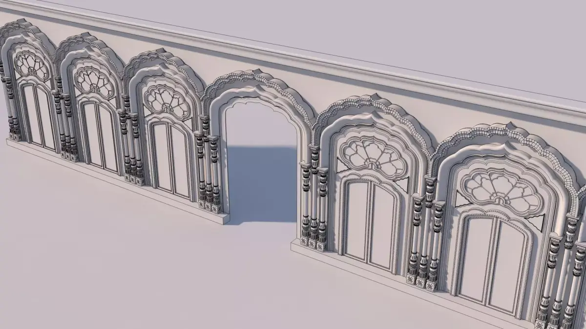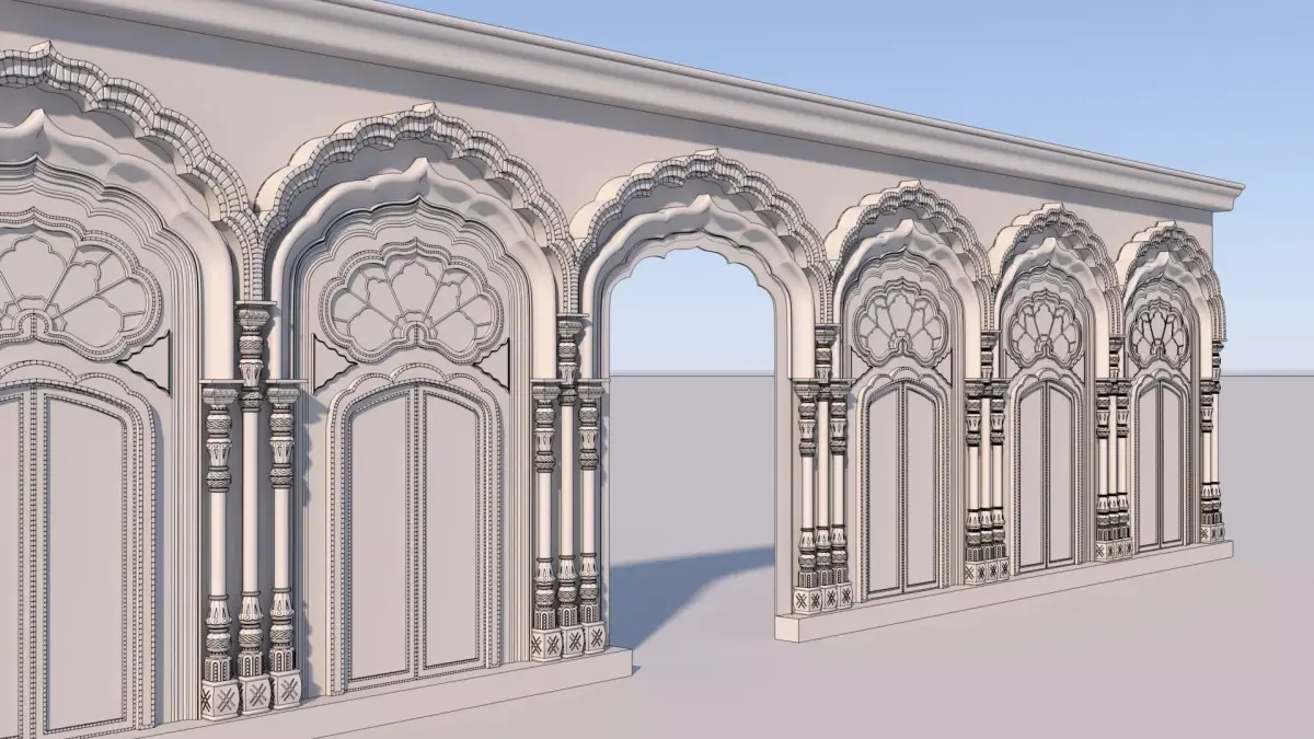 The Heeramandi Arch Wall Panel is an opulent design element inspired by the regal aesthetics of Mughal-era courtyards and historic havelis. Characterized by graceful arches, intricate floral motifs, and layered ornamental detailing, the panel evokes timeless elegance and cultural richness. Its symmetrical composition and refined surface textures create depth and visual rhythm, making it an ideal backdrop for luxury weddings, heritage-themed events, stage décor, and premium interior spaces. Designed to reflect craftsmanship and grandeur, the panel seamlessly blends traditional Indian artistry with contemporary execution, offering a statement feature that enhances ambiance, scale, and architectural sophistication.