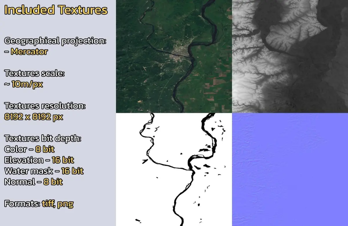 Warning: minor clouds/artifacts may be present on the diffuse color satellite texture due to the nature of the dataset. Check product images.