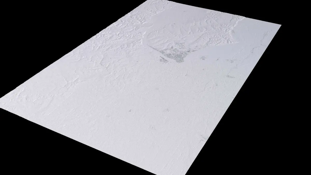 Originally created in Houdini 19. Final images rendered in Houdini. Data source is ASTER GDEM V3, ASTER WATER V1, Open Streep Maps 2022, Copernicus Sentinel 2016.