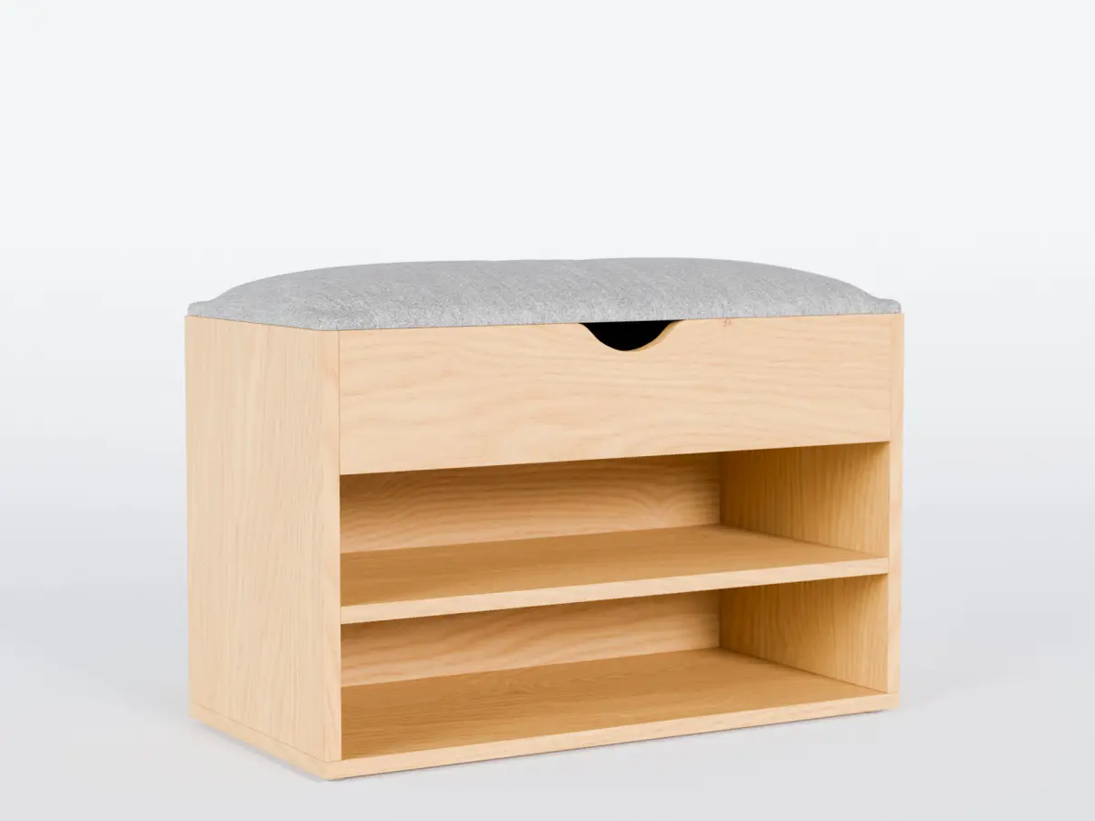 Japanese minimalist wooden rack shoes with cushion seater premium photo 3d render