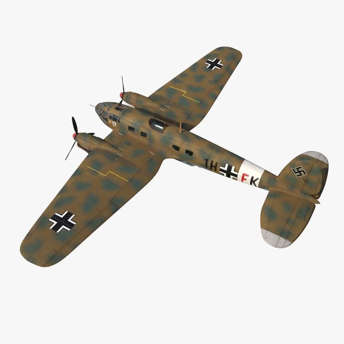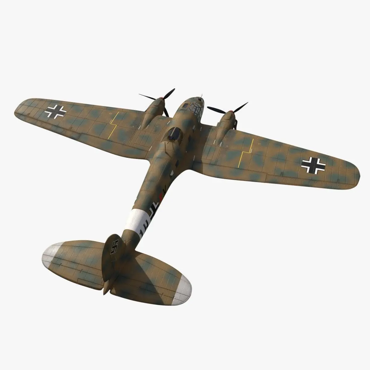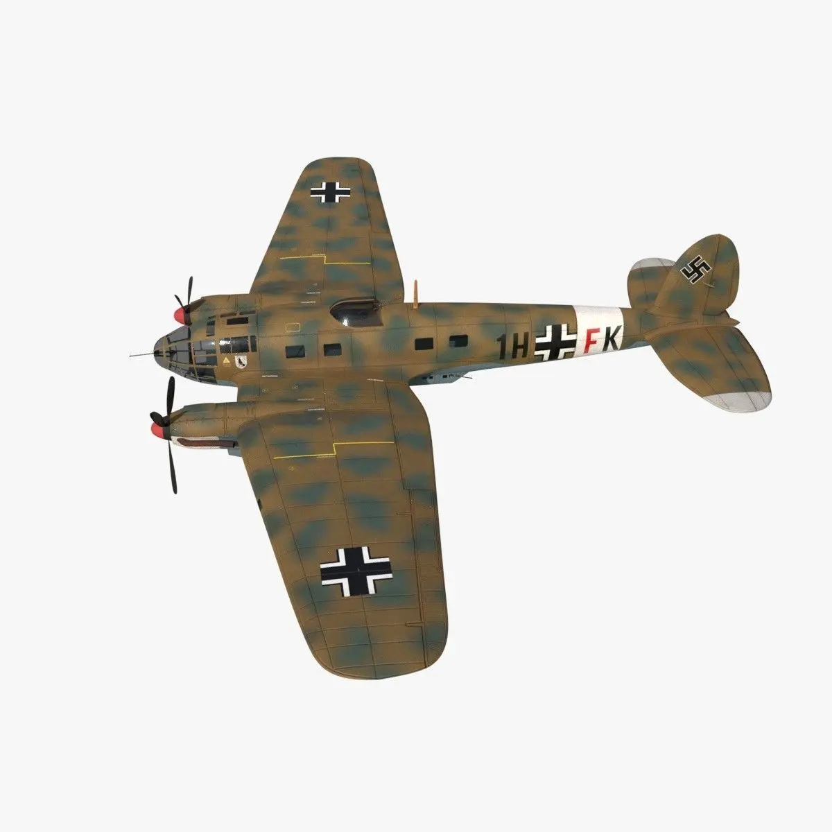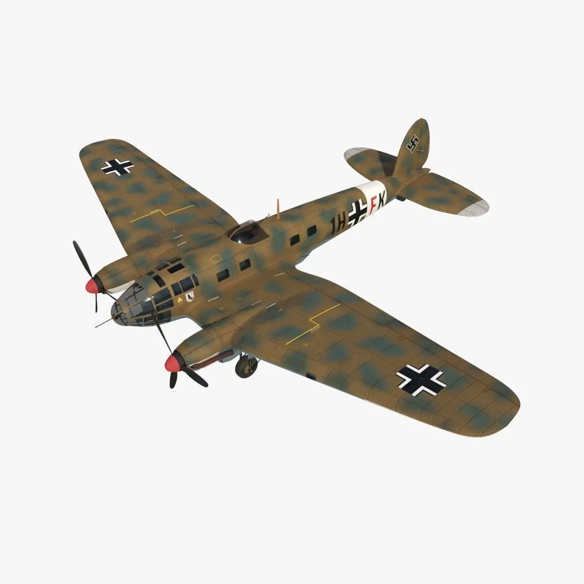 The Heinkel He.111 was a German bomber from the Luftwaffe used on many fronts in Europe during the WWII. This model is a historical re-enactment of the coded 1H+FK aircraft. This plane was integrated in the KG (Kampfgeschwader) 26 unit group. It was based in Ottana in Sardinia and it was in service in 1943. This unit flow bomber and torpedo missions over the western Mediterranean.