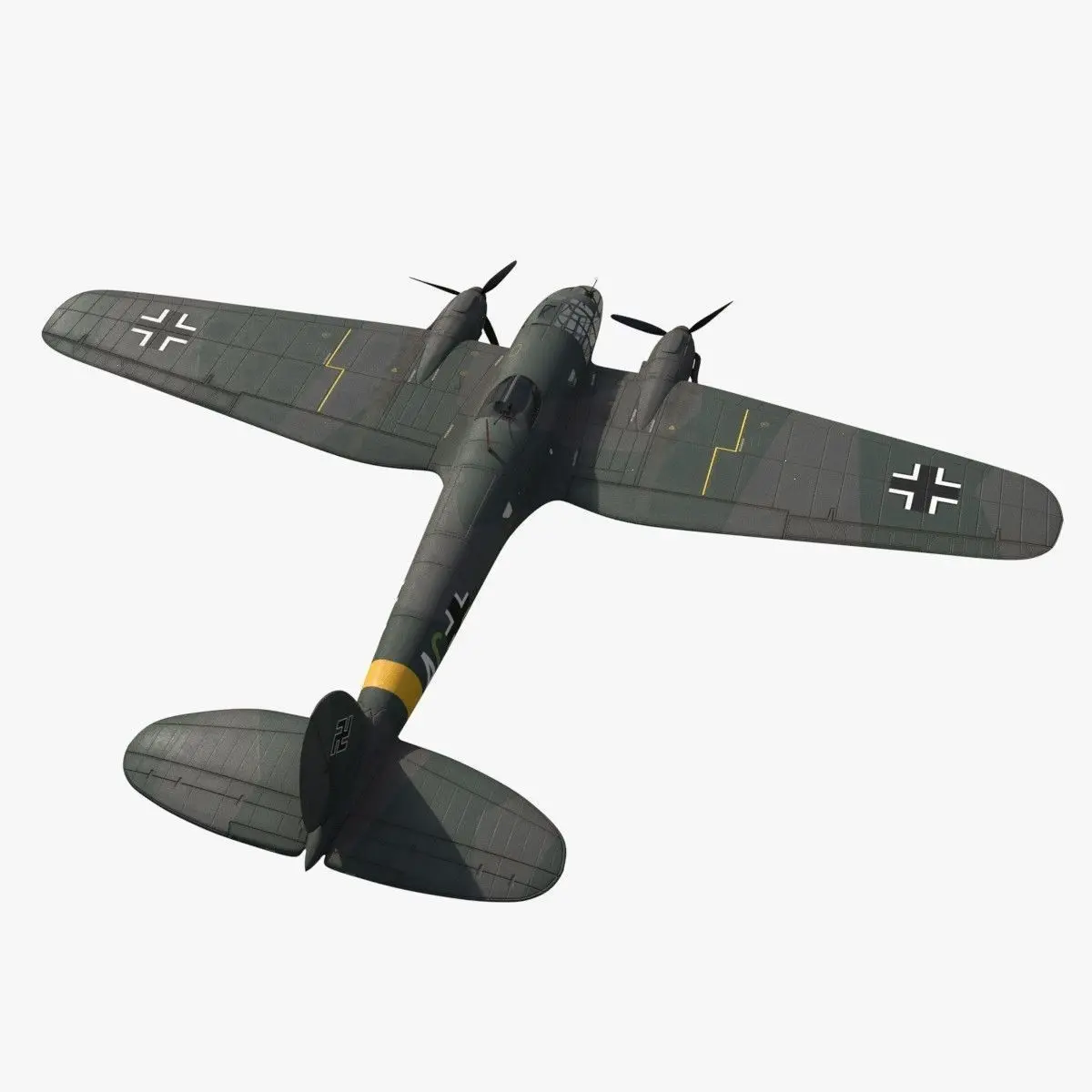 The Heinkel He.111 was a German bomber from the Luftwaffe used on many fronts in Europe during the WWII. This model is a historical re-enactment of Major Herbert Wittman's plane. This plane was integrated in the KG (Kampfgeschwader) 53 unit group. It was based in Olsufjewo on the Southern Russian front and it was in service during all summer of 1943. This He.111 was used for low-altitude ground-strafing missions.