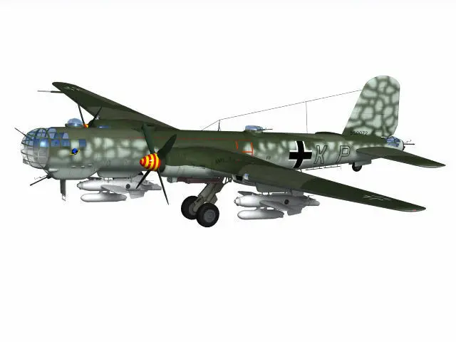It is a German 4-engine bomber. The model is A-5 type. With Hs293.The landing gear is divided into open and closed parts.Created with Lightwave3D.The number of polygons in 3ds is 356532.This model is not designed to be used with low polygons, such as in games.Please be careful when purchasing.This model is not designed for 3D printing.Please be careful when purchasing.